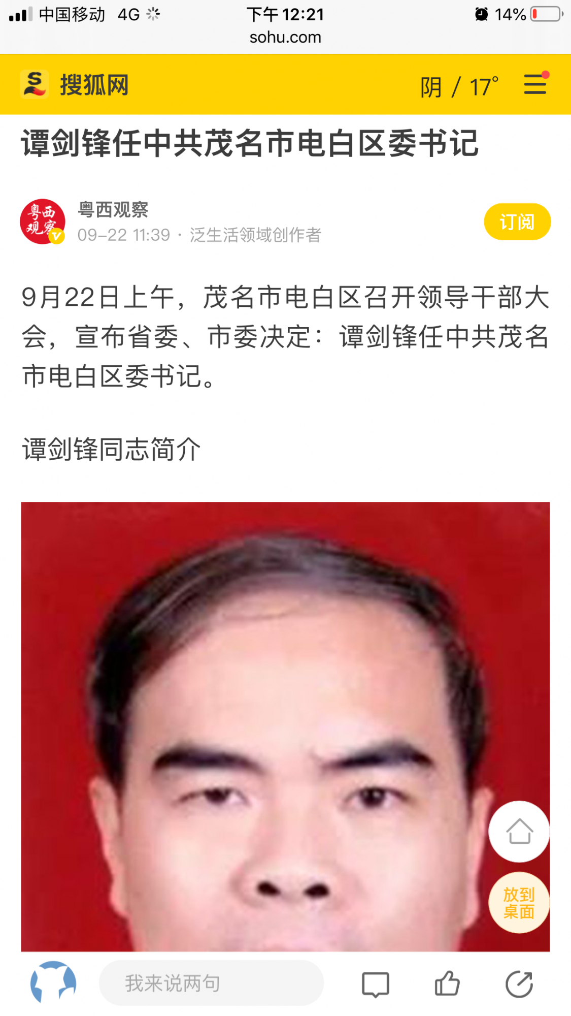 爆料 谭剑锋任电白书记的新闻全被删了,诡异。 (3人在浏览)