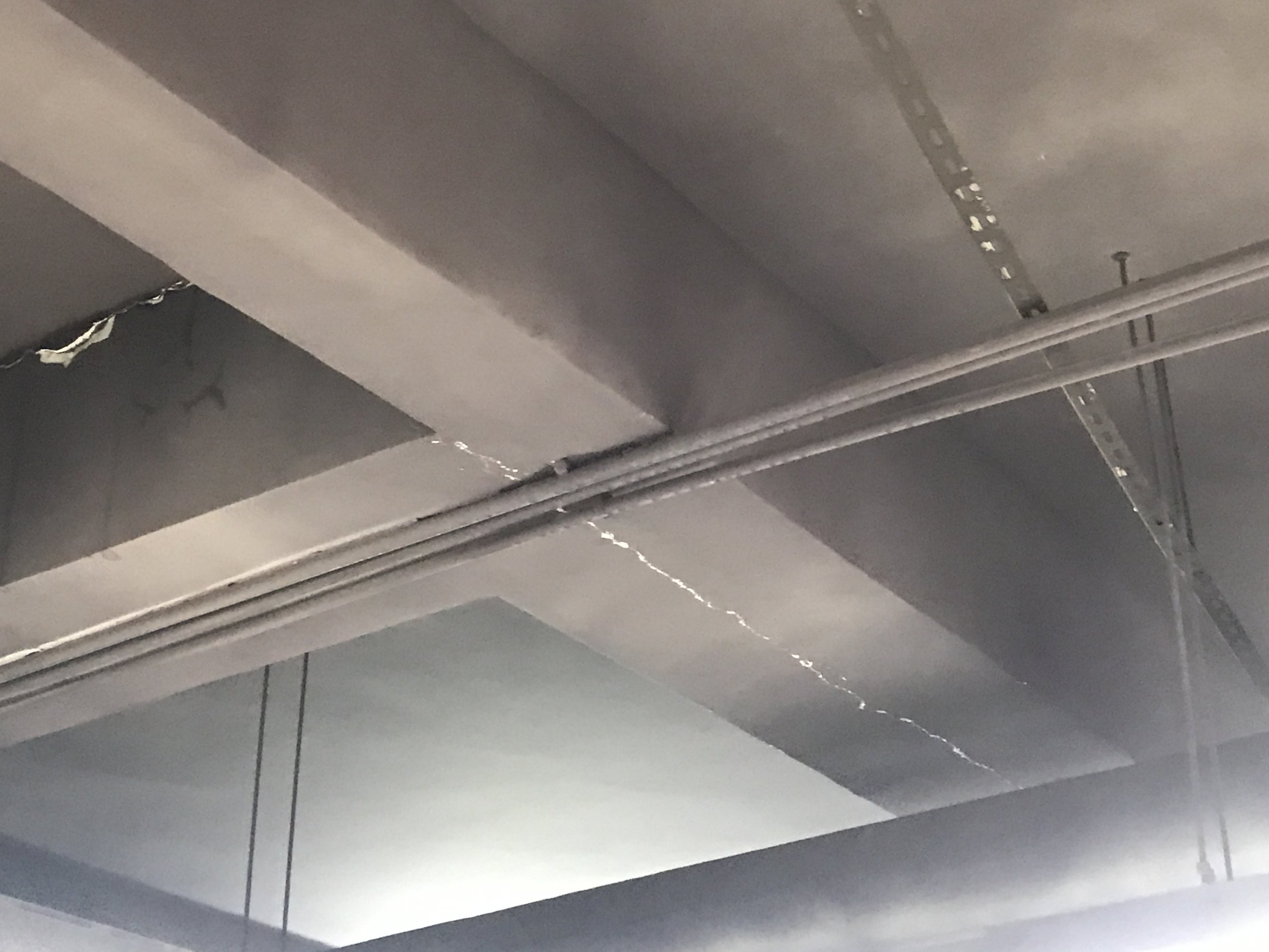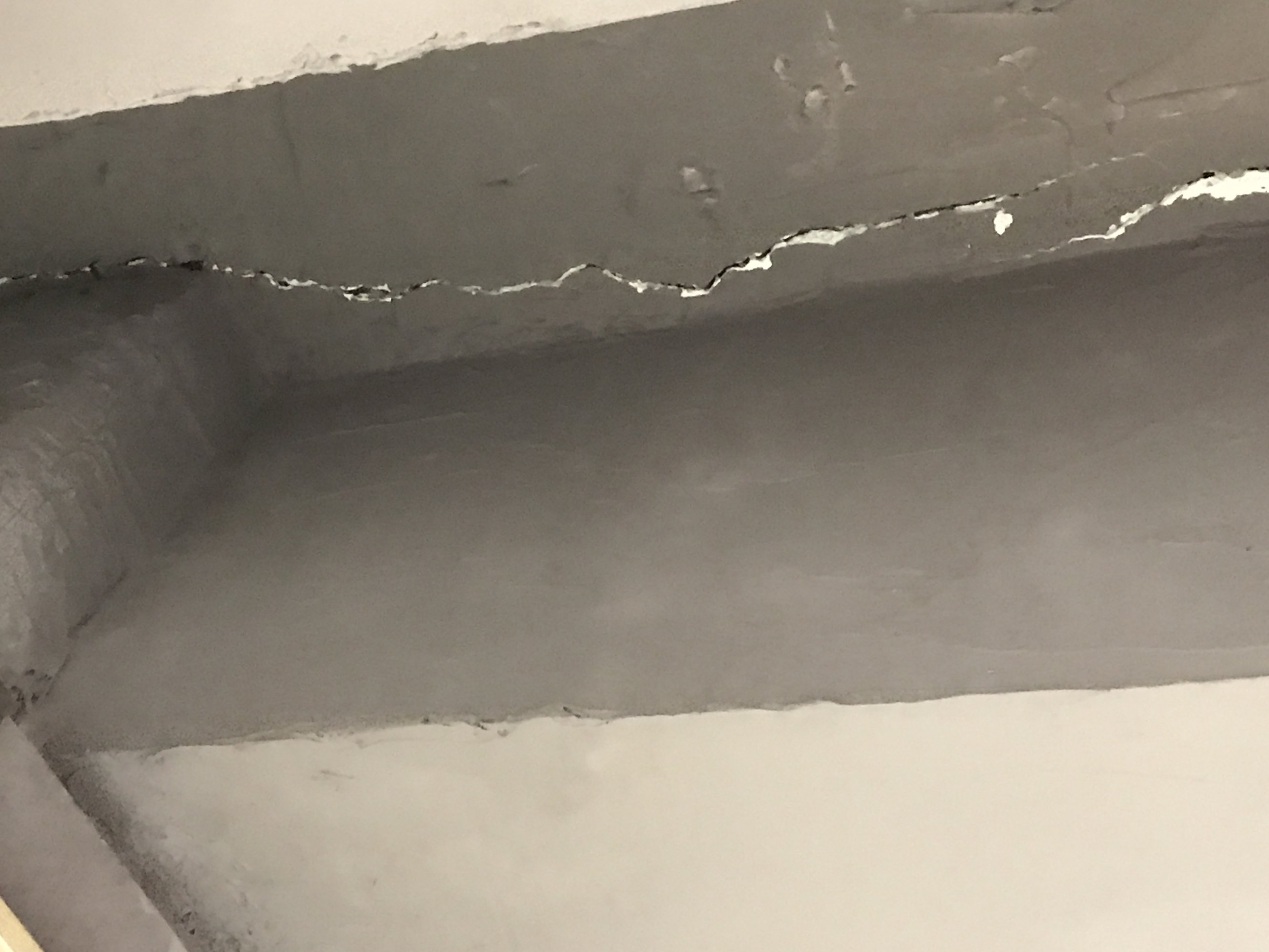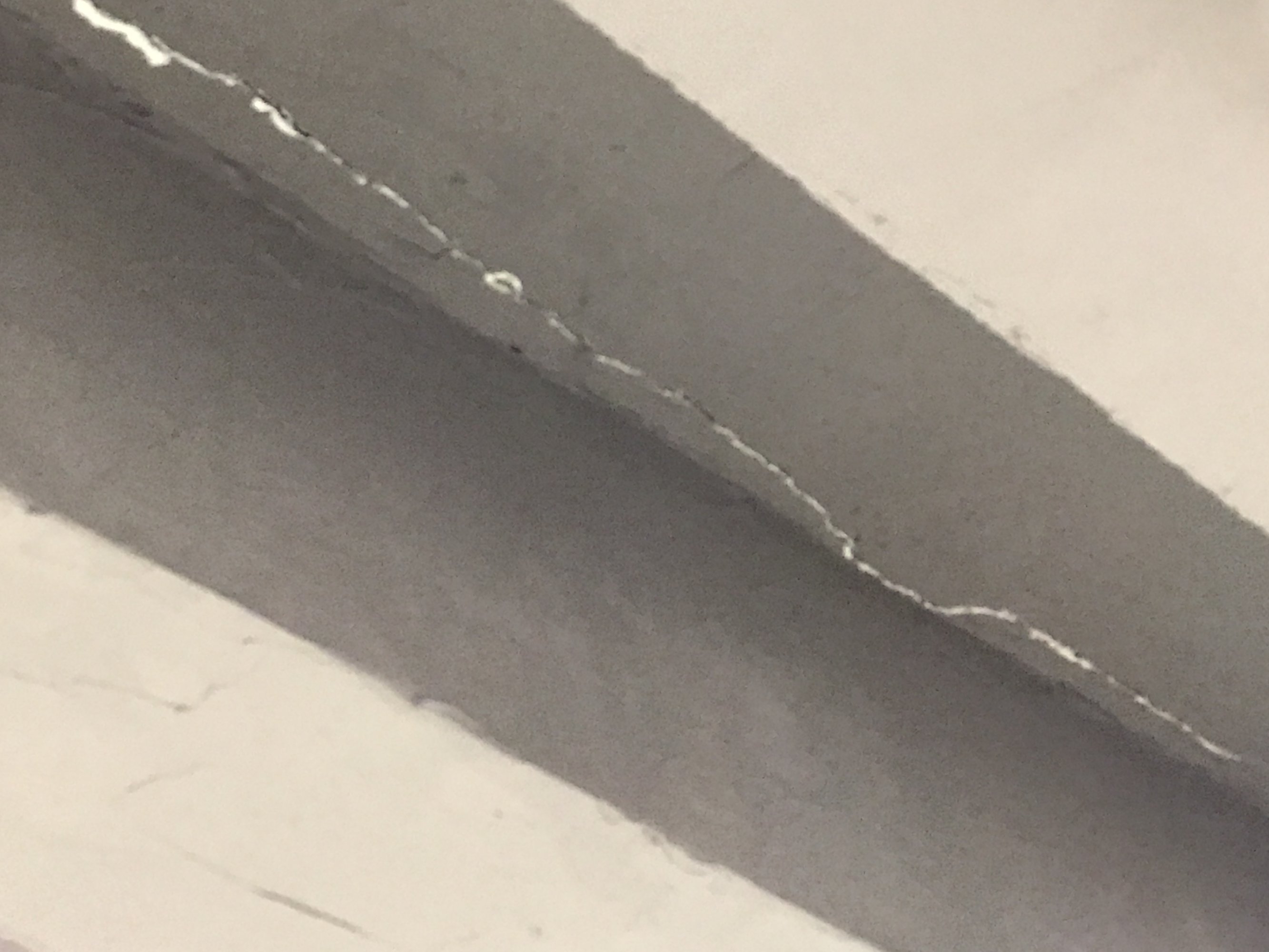 中间夹着灰屎的应该是伸缩缝,但还有很多好像楼板梁边也有裂痕,看着就怕怕了。