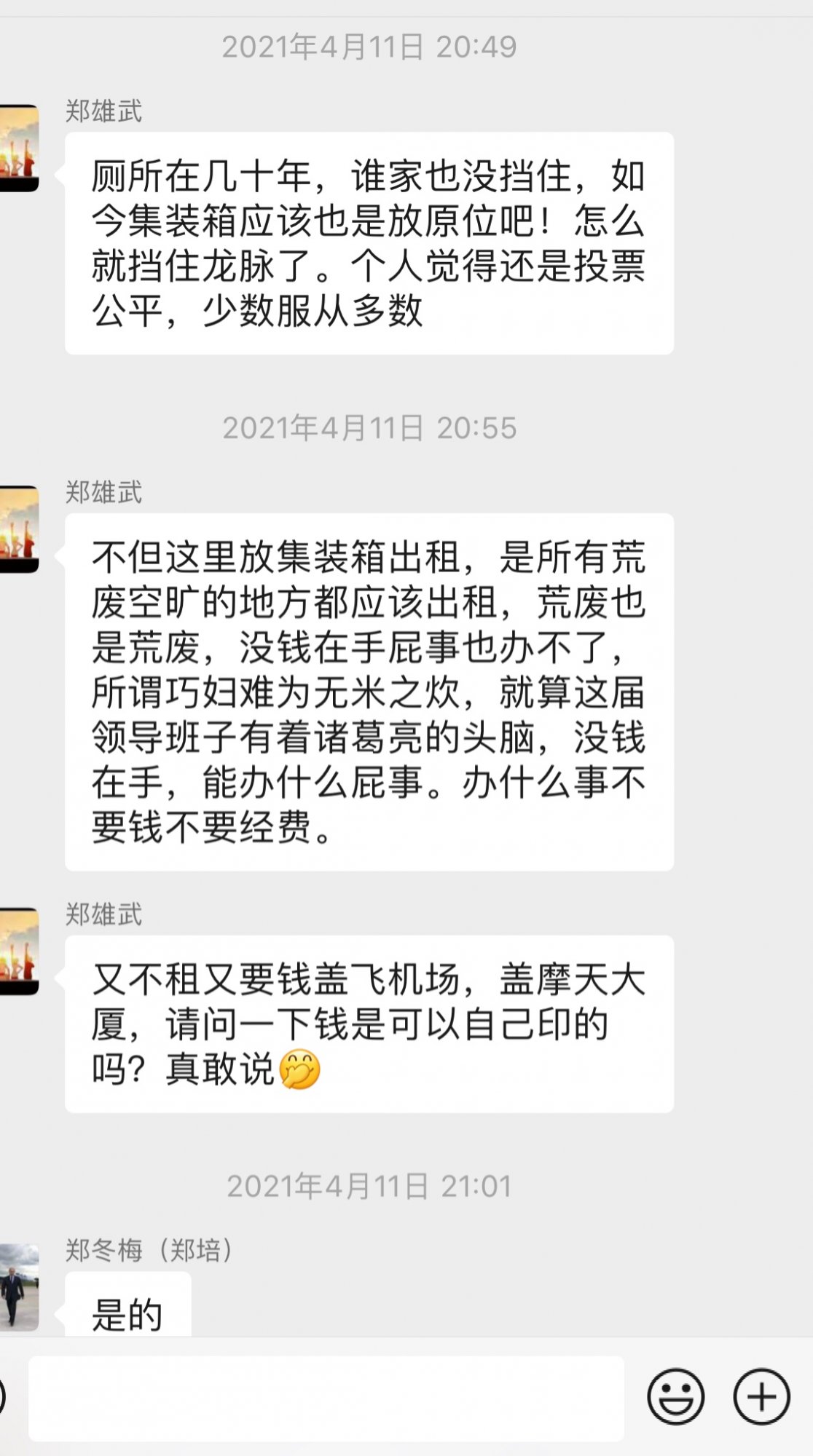 这段时间收到多名村民的私信,多数是反映村口空地处置问题。主要有不满村口停车乱象影响村民出行问题,也有不乐意见空地被边上几户人占为己用,建议要么好好利用起来做公益,要么盖回村厕所。也有人多次说到郑庆友私心重。