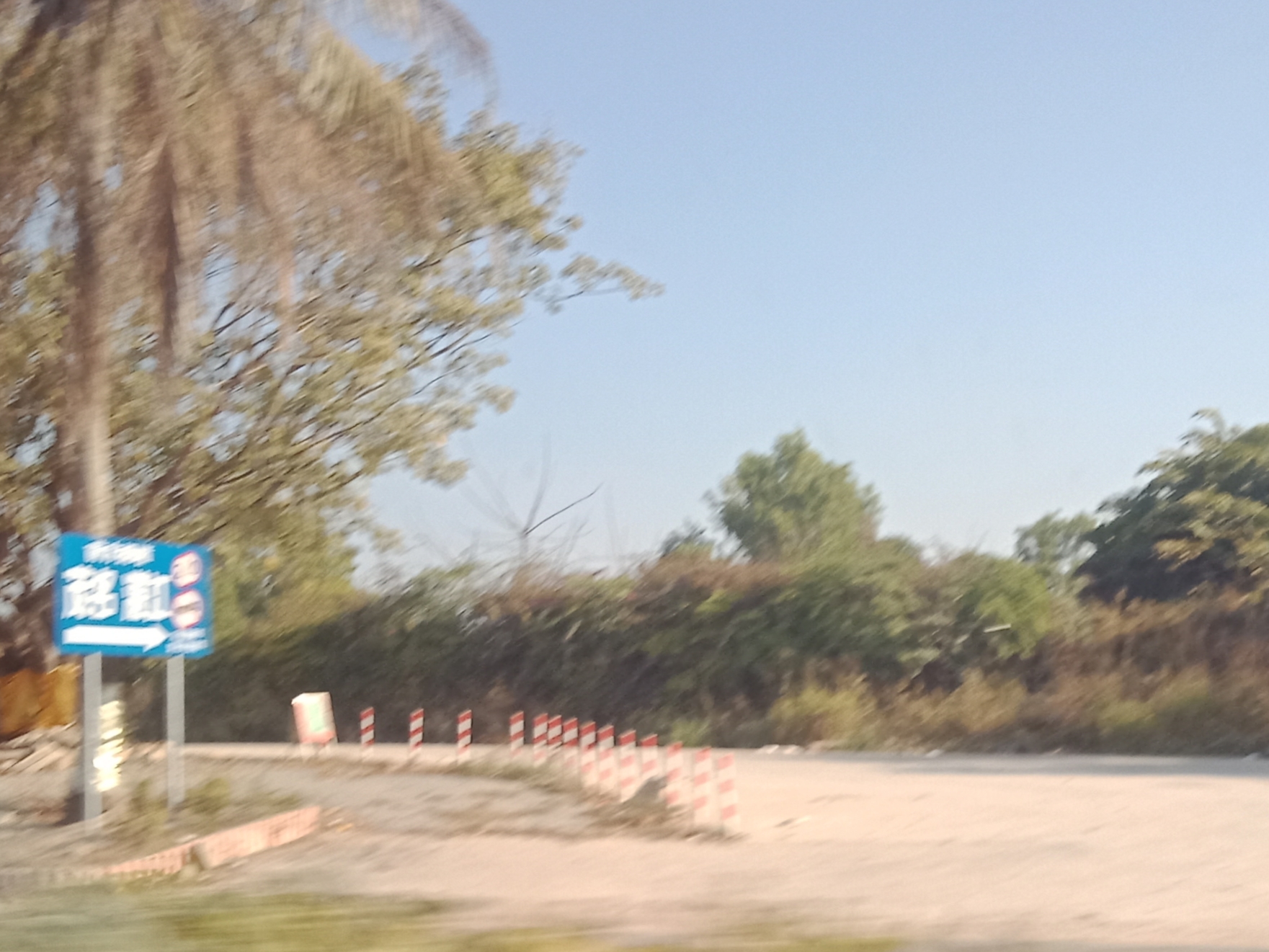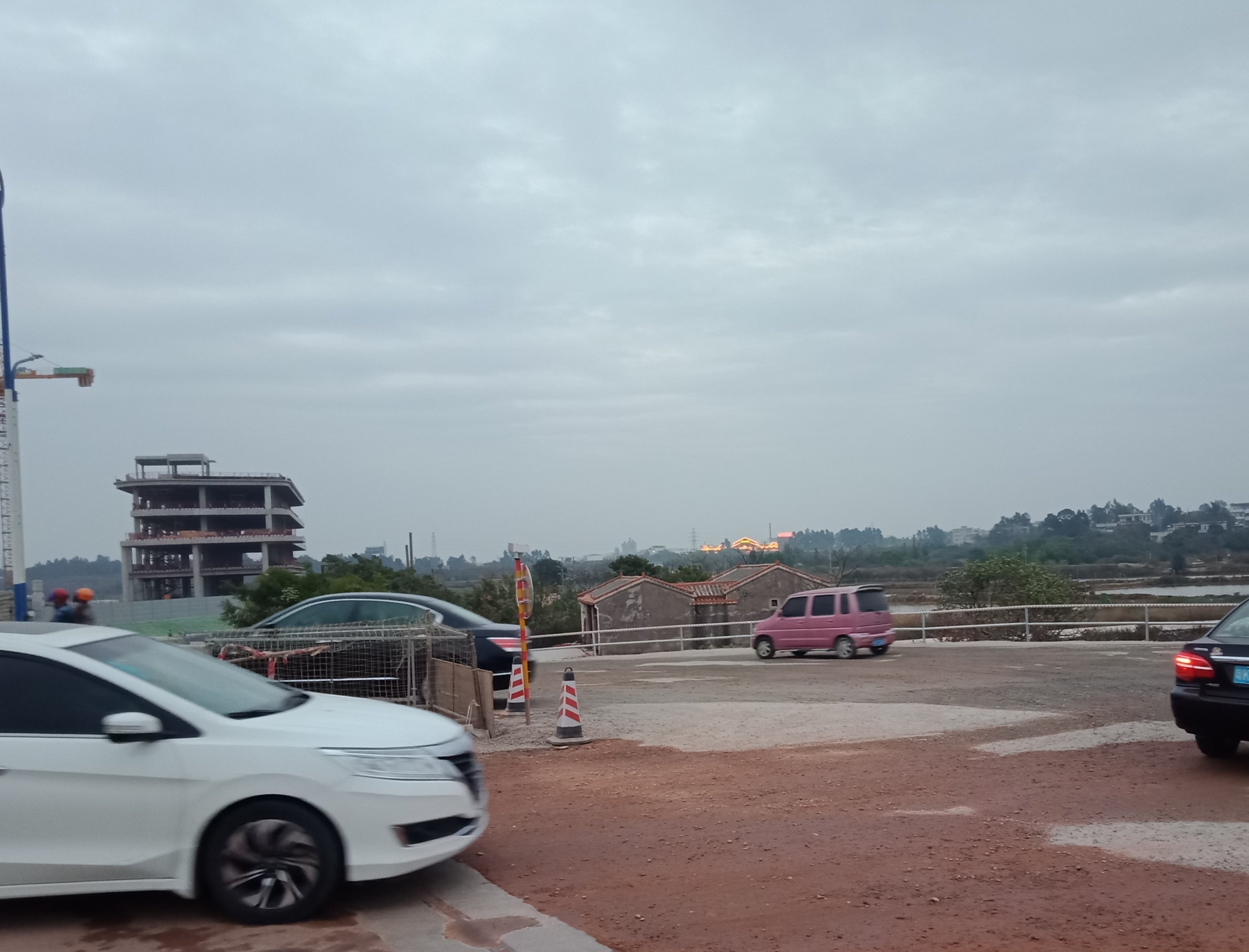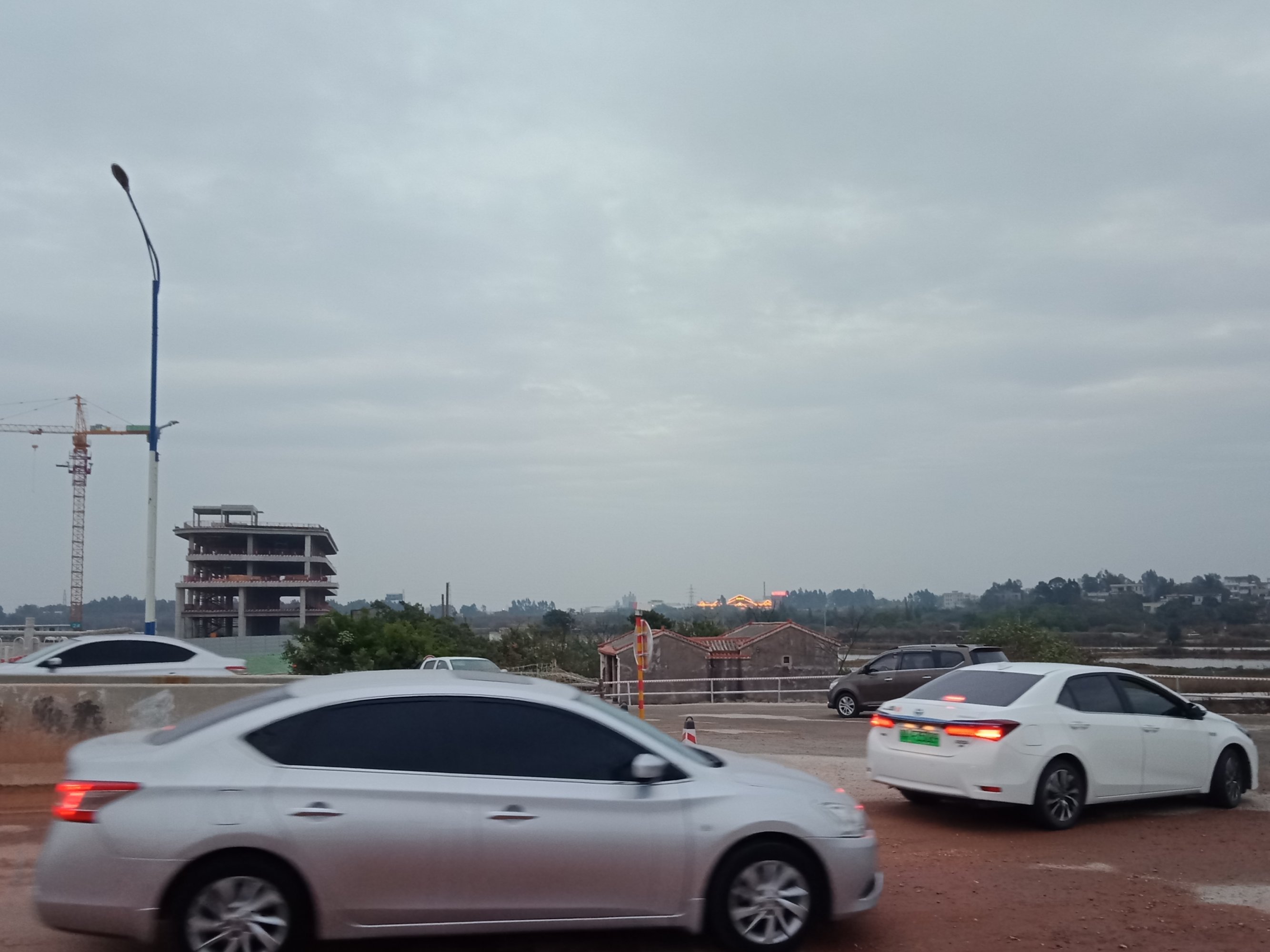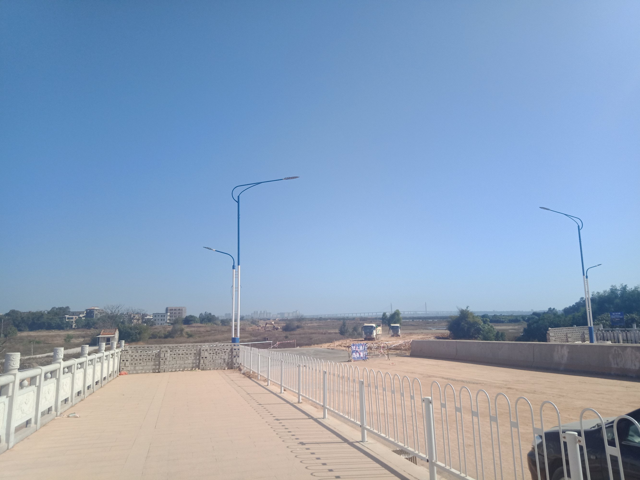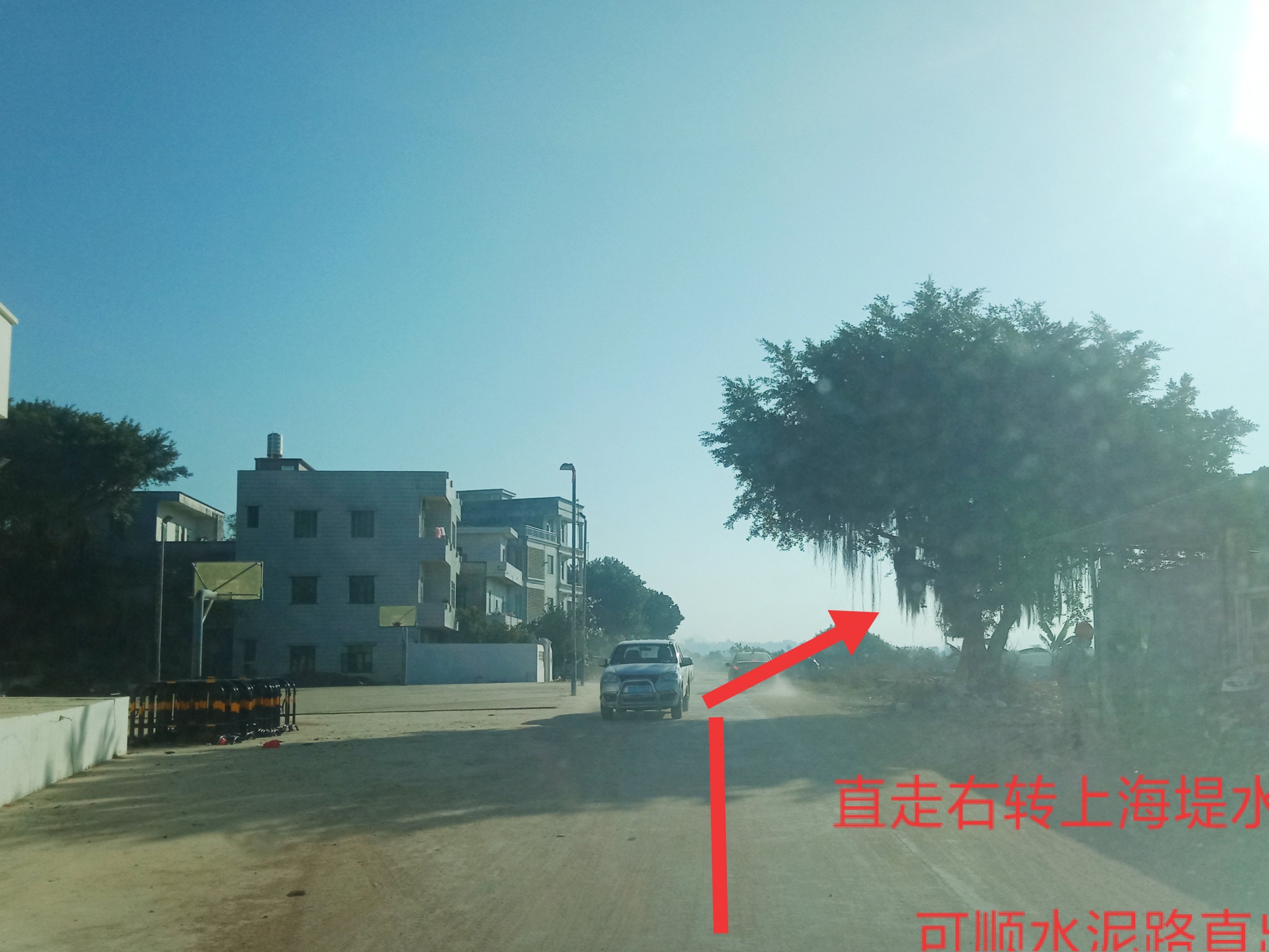 又从登步大桥去碧桂园,开始一、二公里弯曲如羊肠,石粉路面,汽车经过尘土飞扬,感觉会伤车碌。到达海堤路段,有钩机在做工,指示我们折回头,以致未能走全程。