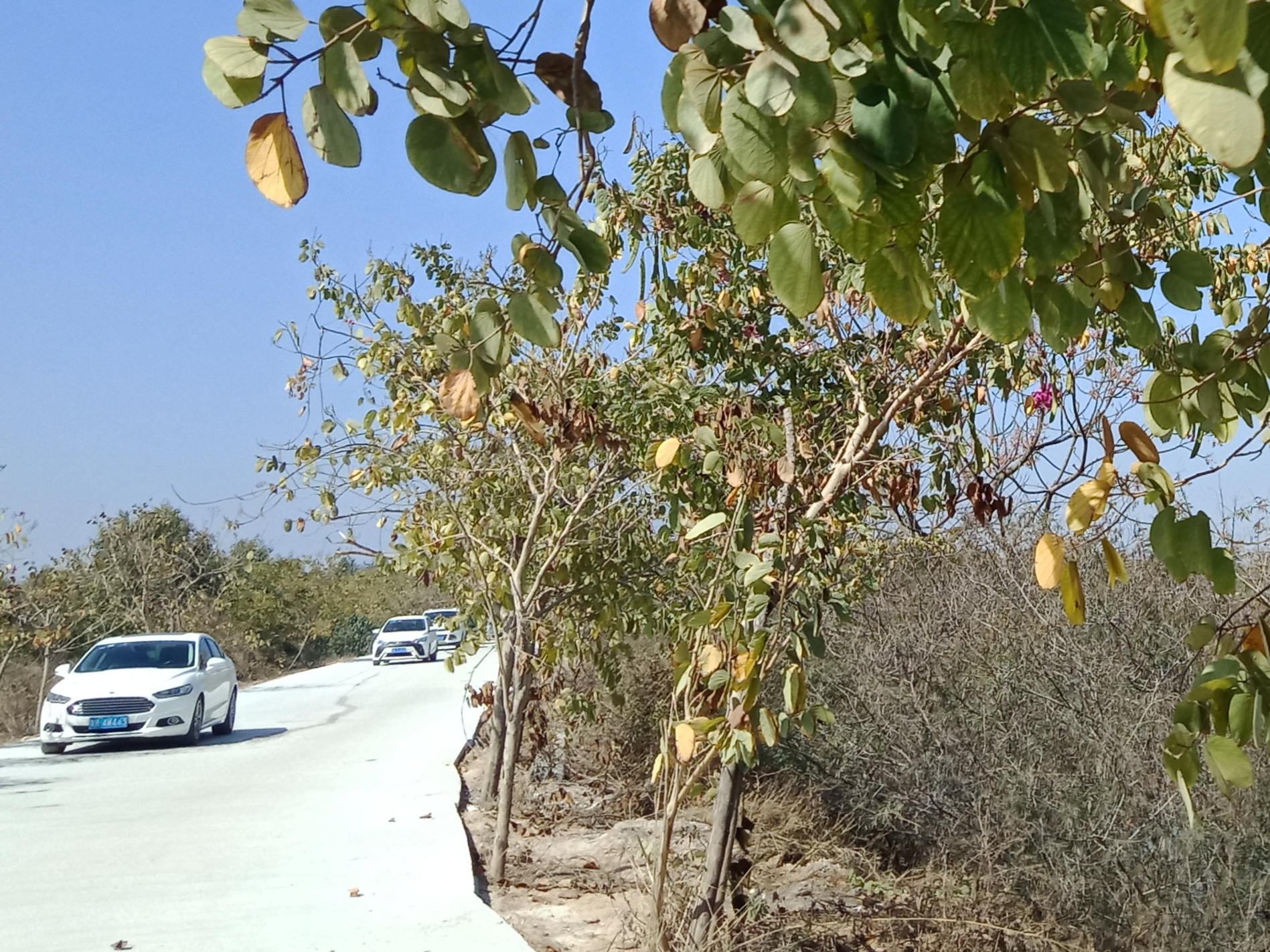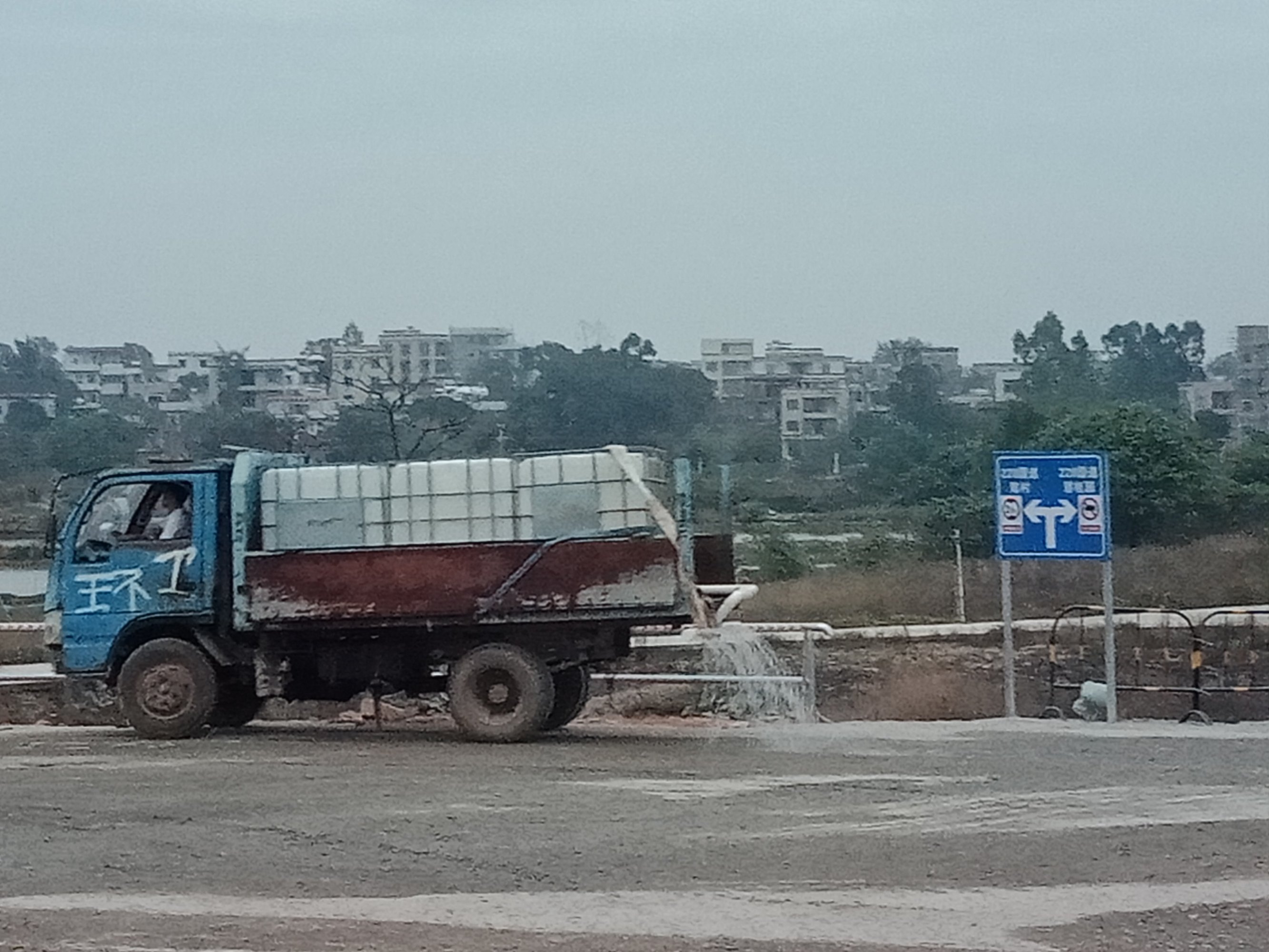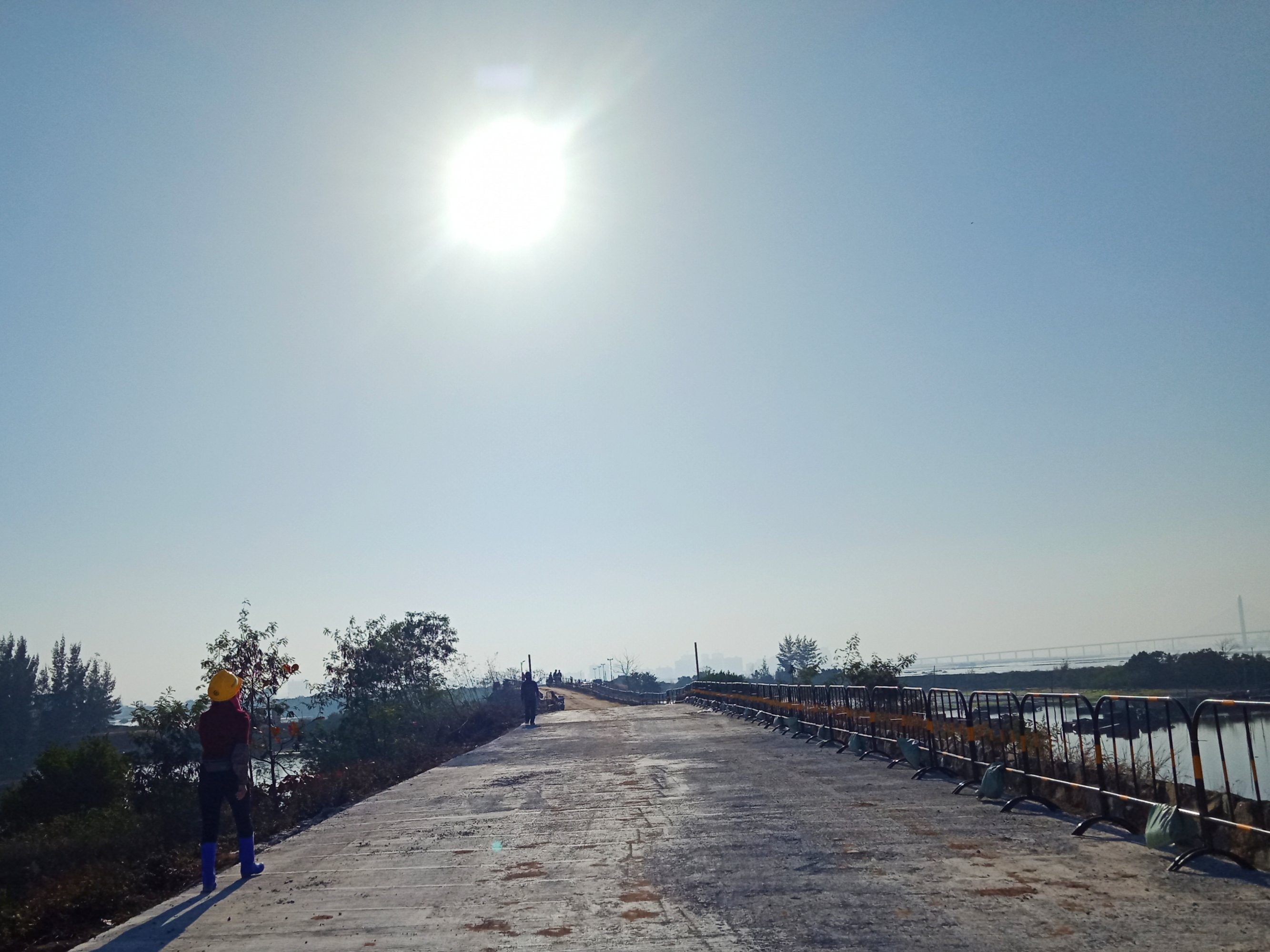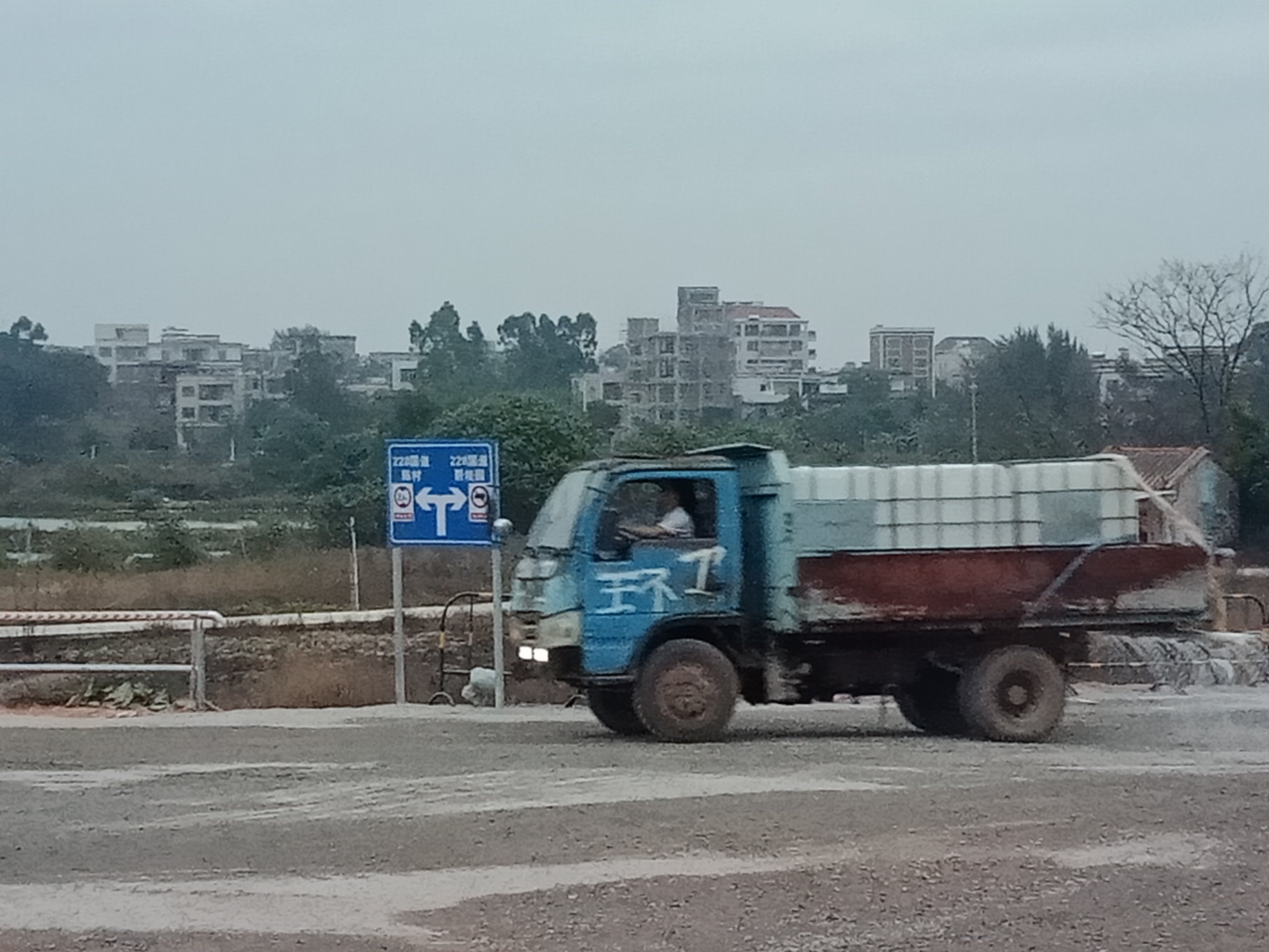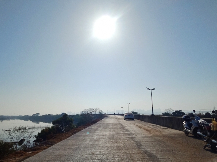 又从登步大桥去碧桂园,开始一、二公里弯曲如羊肠,石粉路面,汽车经过尘土飞扬,感觉会伤车碌。到达海堤路段,有钩机在做工,指示我们折回头,以致未能走全程。