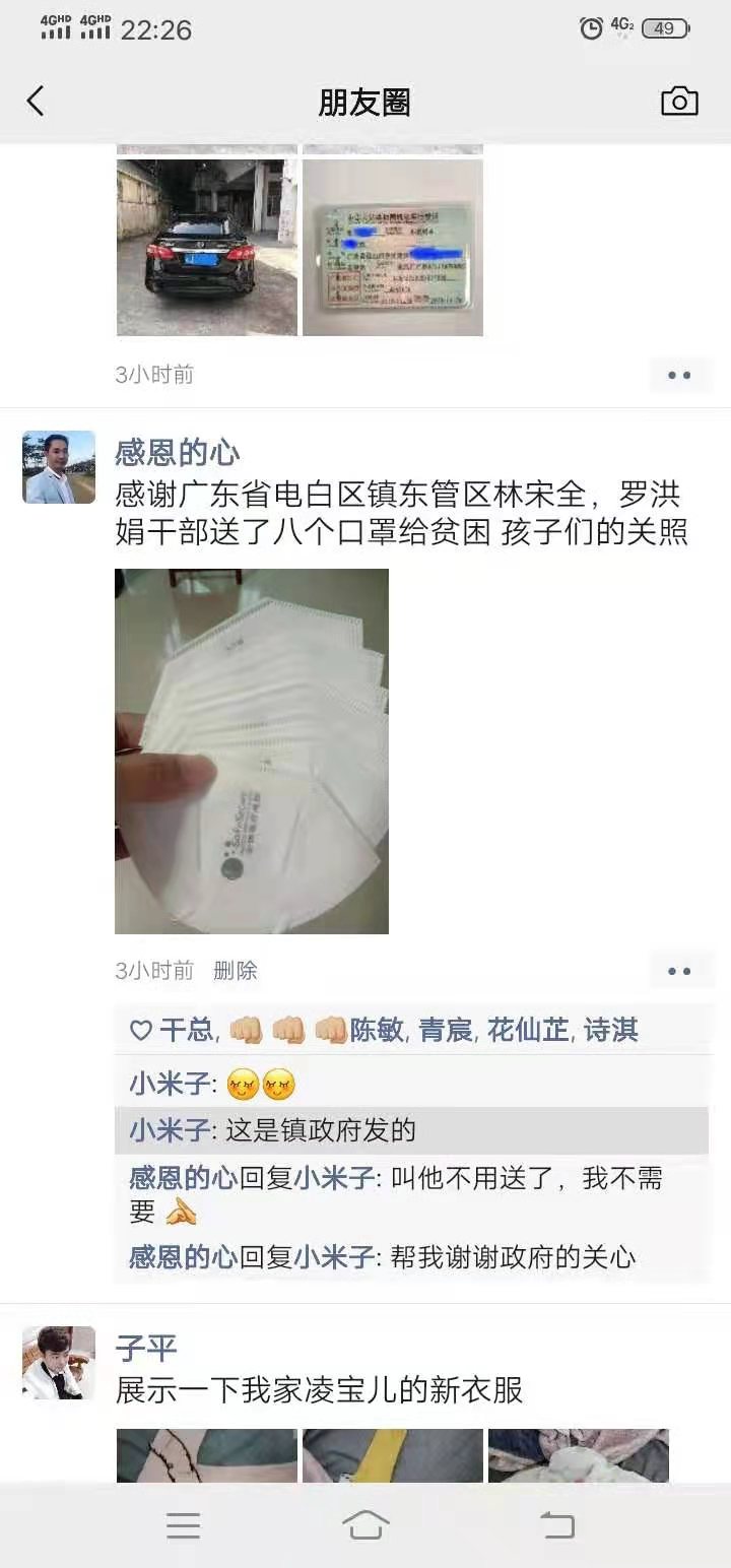 谢谢镇政府的八个口罩。总比没有好,年头还要八块一个呢。