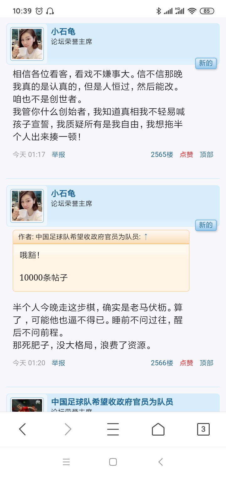 中国足球队希望收政府官员为队员 荣誉主席 注册 2009-03-09 帖子 4,928 反馈评分 179 点数 101 2021-11-06 #98 lj_sky 说: 看样子,是战场贴被锁后,酣战的各位趁余兴来这贴继续的意思? 窃哥应该发挥专长,把那贴的锁偷了,开贴让各位可以在上面每天三百回合 点击展开... 袁隆平爷爷让我们吃太饱了,太闲只能吹水,指点江山。