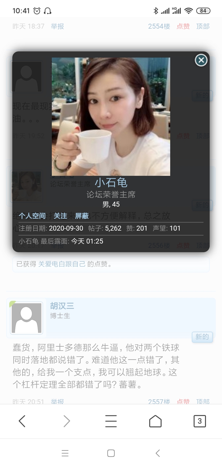 电白出路在何方 荣誉主席 注册 2010-07-01 帖子 6,283 反馈评分 1,075 点数 191 2021-11-06 #92 我爱春天 说: 龟仔被封了?还是有绿道跑去美国了? 点击展开... 大小号永久封禁,有他不知天高地厚的原因,也有黄毛教主举报,悲情