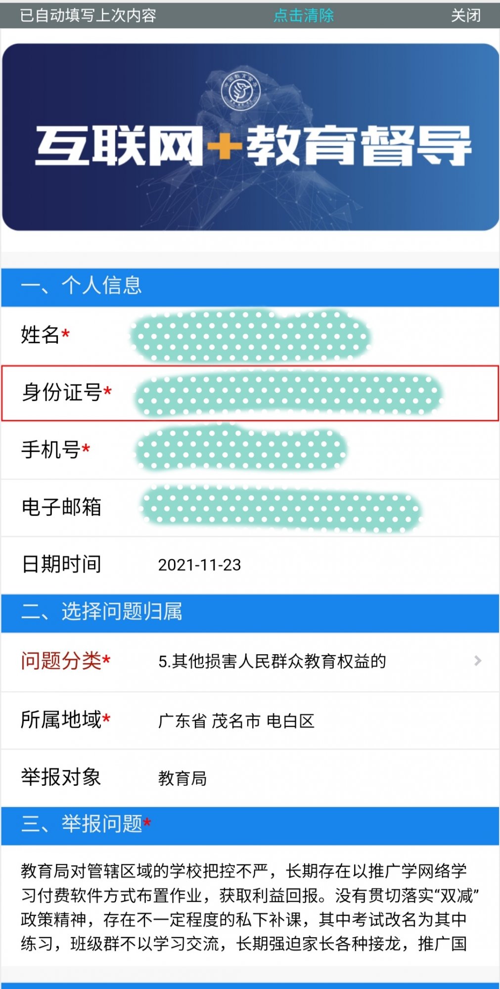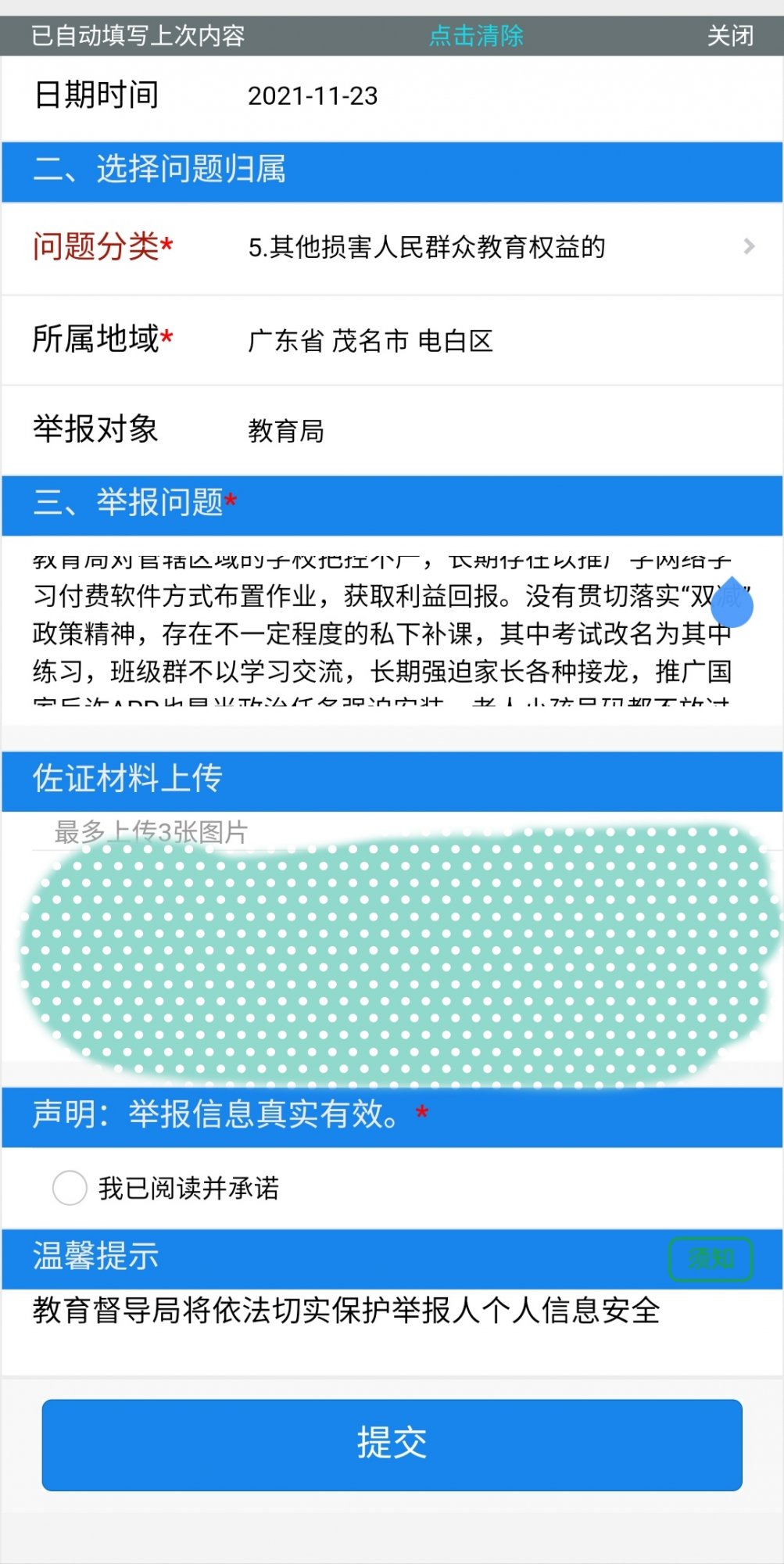 投诉 请区政府部门赶紧约谈教育局