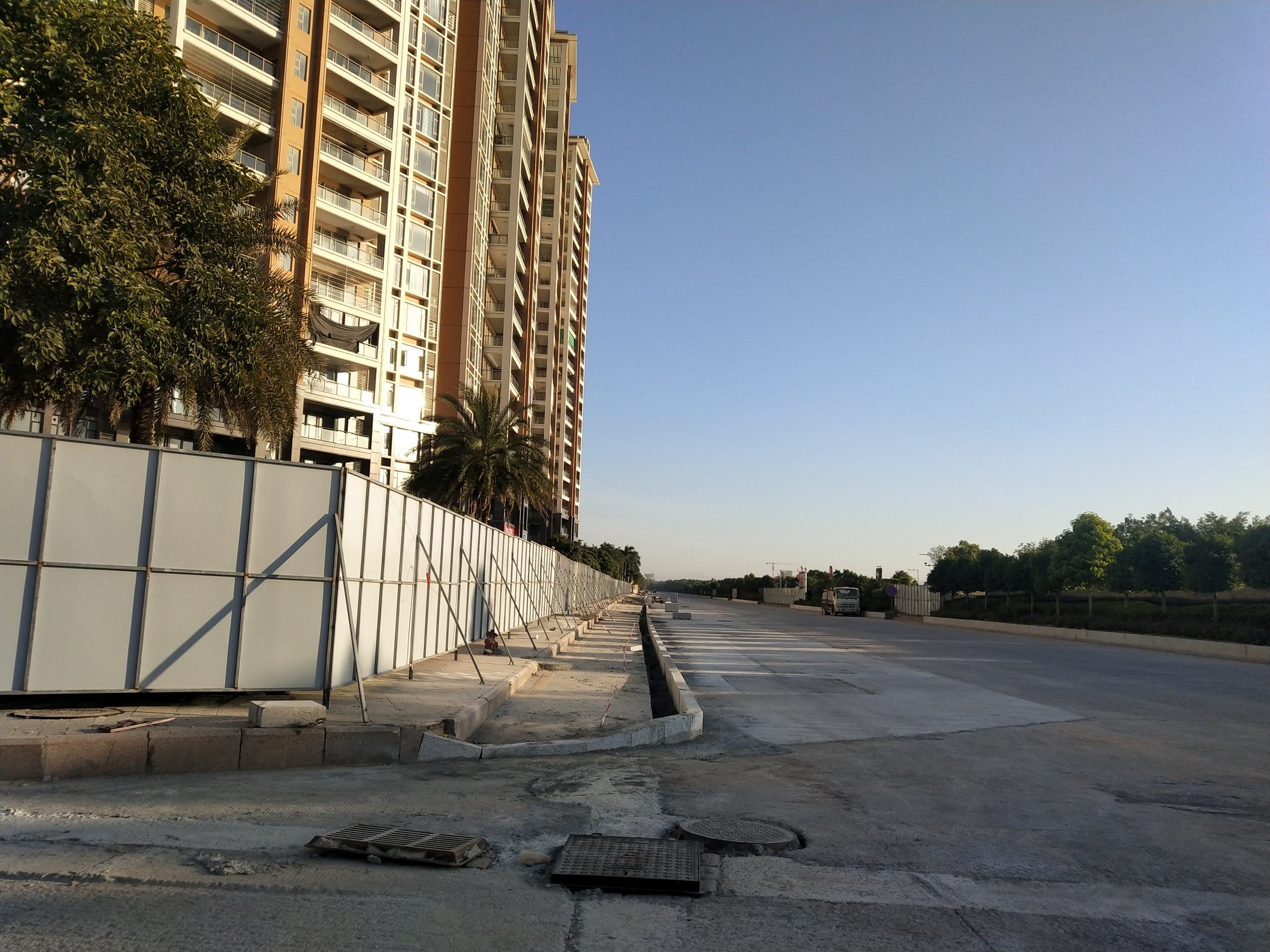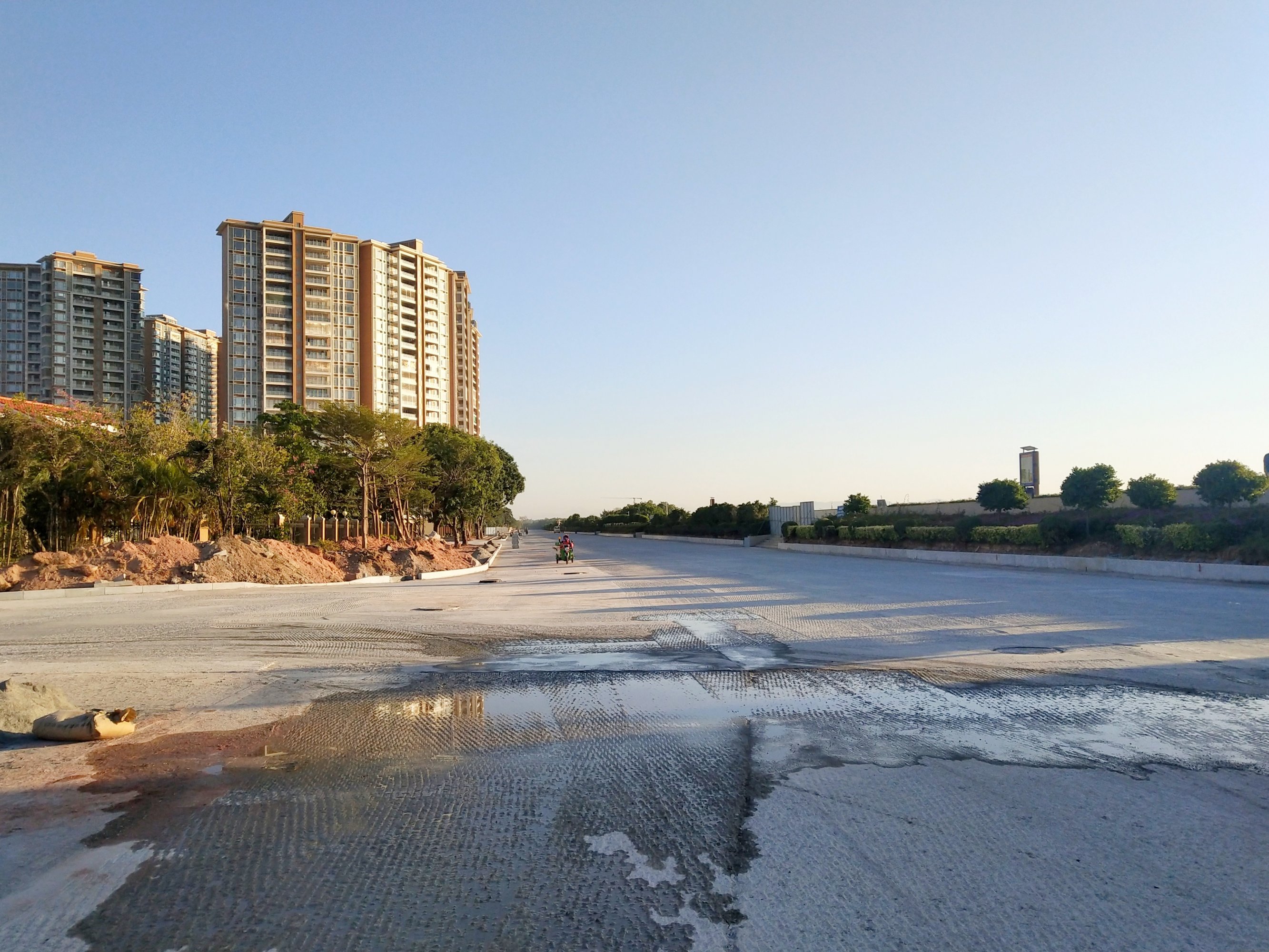 走了下海滨登步那边,站在中间一眼望去感观还可以挺宽敞,见人见异,戴了口罩,味道还是有点浓,原则上还没能通行,特别小车,不过也希望等沥青再硬点也好,还有水槽铁皮拦着各路口,现在还在施工与各种配套设施,有见路灯底座架等等,