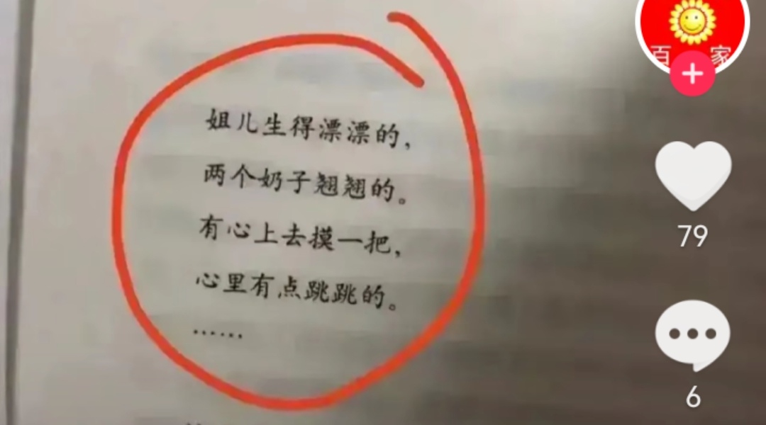呵呵,又是北大教授!丢卡奶,把这样的黄色打油诗塞进我们小学生的课本里,天打雷劈! 尤为严重的是,我们的老师在课堂上又是如何朗诵这样的黄色打油诗给学生们听的。我们的老师在课堂上也照样朗诵吗?