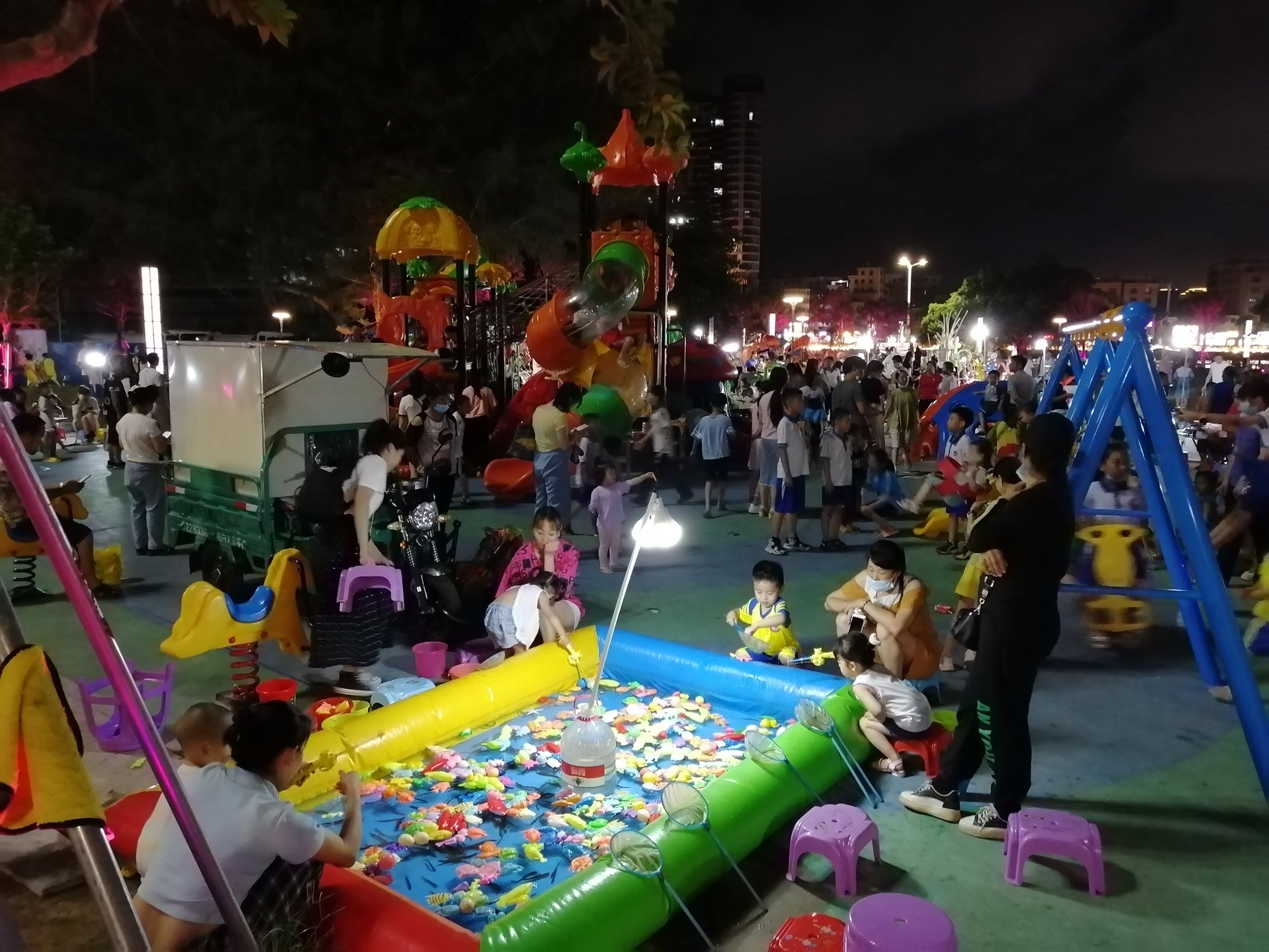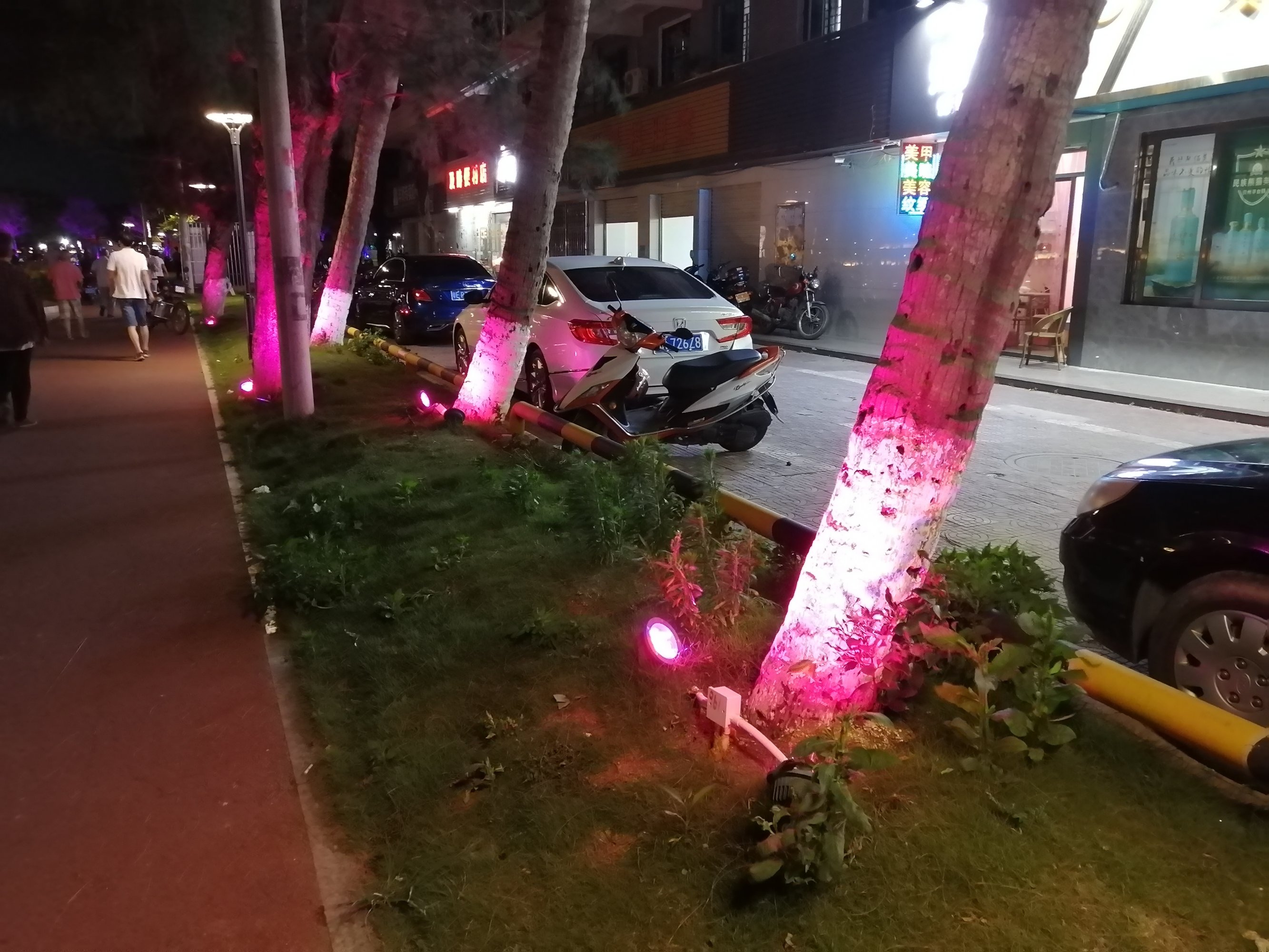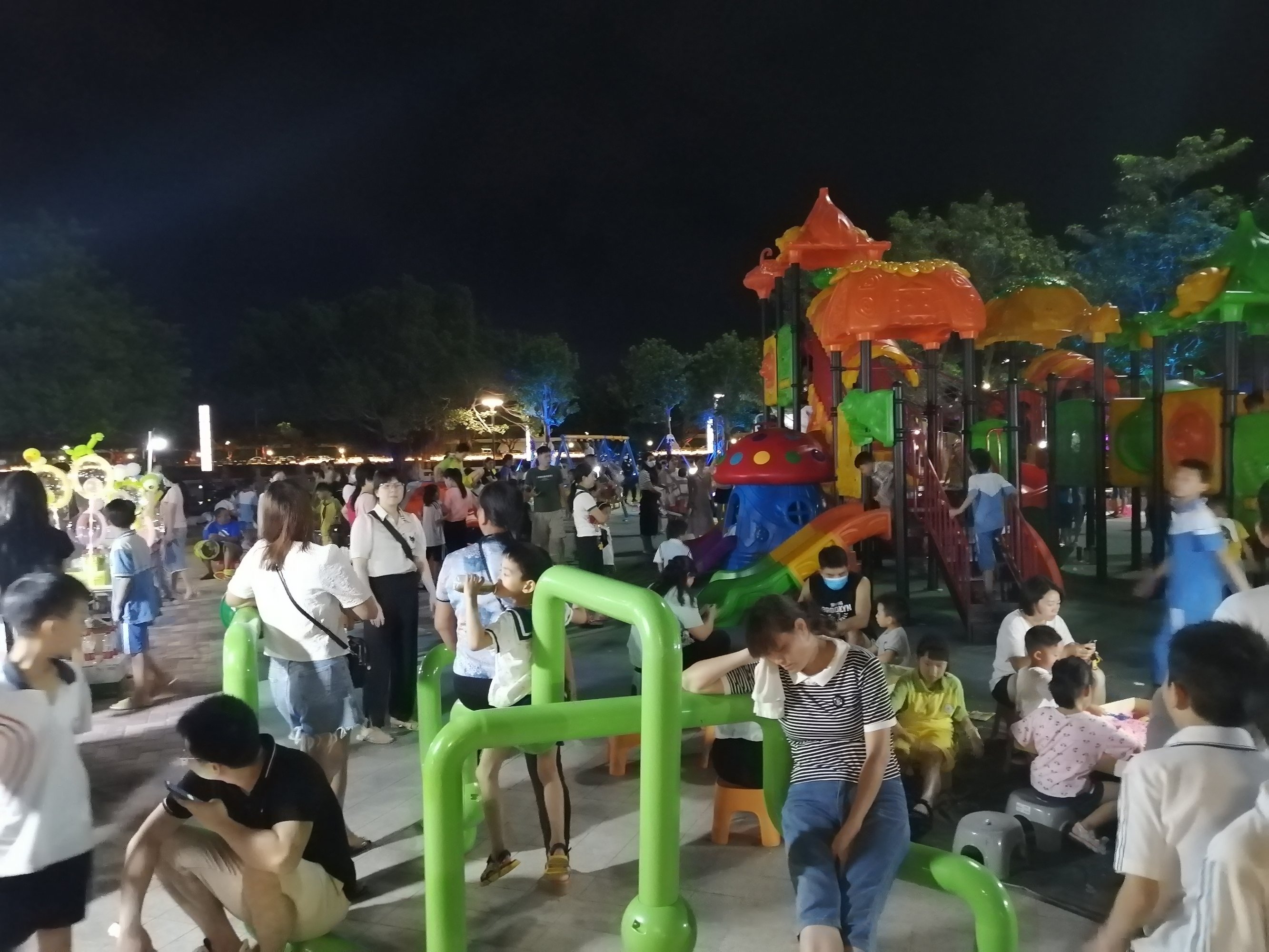 爆料 七界果里井含猫笼渡市垃圾,水东东湖公园所有树木都装有灯光,只有儿童乐园没有照明灯光