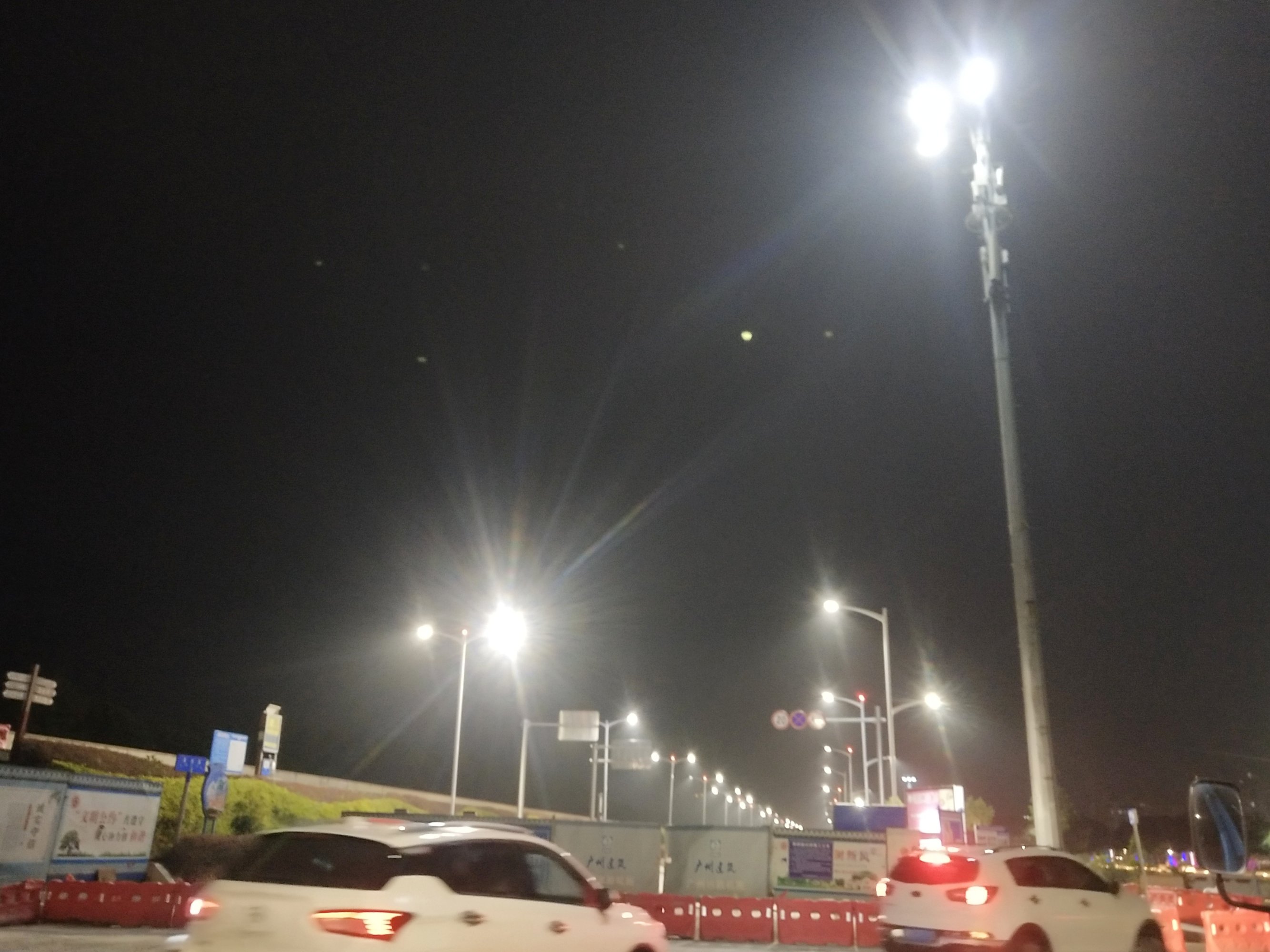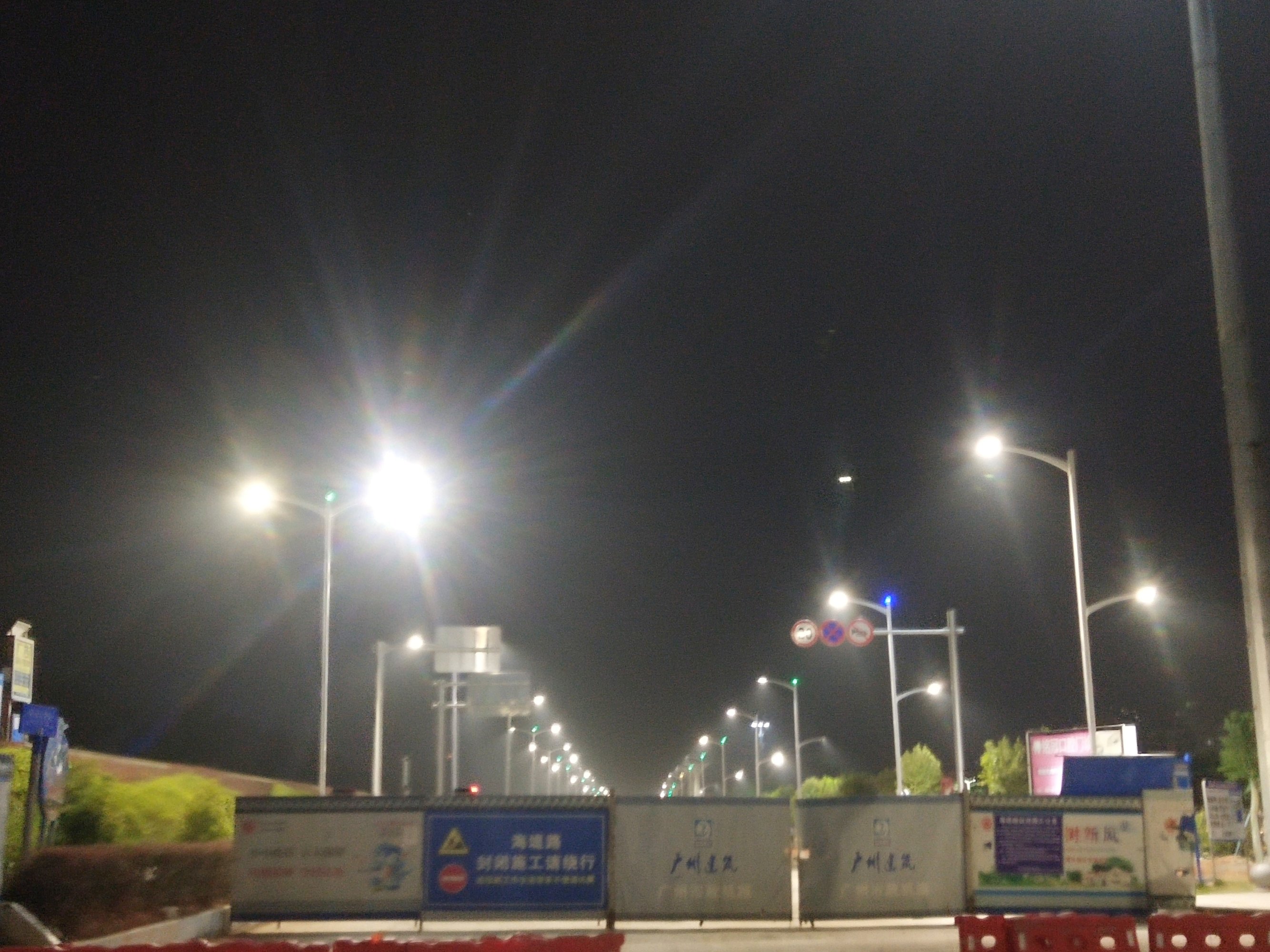 来几张前些晚上较晚时间,站在还封闭还没清表的路中间的图...