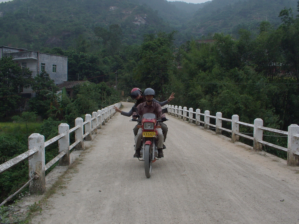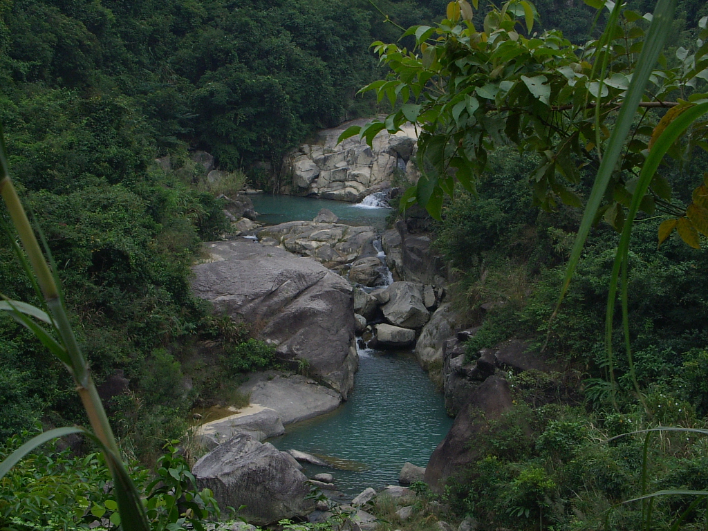 我这组图片也是从水东湾论坛转过来的,看他们走的路线已很熟,或许是急着上鹅凰嶂,所以路上没有多少图片,如果不急着赶路,边走边玩,会有很多发现,游山玩水,本人认为亲山亲水要比看山看水感受更深。我只会打打字,其他的不会弄,无法给你什么帮助,我就介绍一些我知道的地方:清湾龙潭,在上三架的路左边(过第二道公路桥后),有一座开顶门楼,上面好象写着“电白县清湾三级水电站”,从那路口下去,清湾龙潭就在那下去的桥下,未建电站的时候,河水从大石壁上直泻下去,石壁、瀑布、深潭成一胜景,现在只有下雨的时候才能看到,从清湾龙潭沿河往上走,那一百几十米的河床也是很好玩的去处,水潭处处、跌瀑连连,在那里洗个澡,让人倦意顿消;从清湾龙潭沿公路上不多远,有一开阔山谷,遍是梯田,若遇水稻熟时,金黄叠叠,村落相错,犹如进入桃花源,又似置身云阳梯田;就在这一带有片竹林,我夸大了一点,其实比不上《卧虎藏龙》,人家是毛竹,这里是离竹;再上去有座拦河坝,坝下一百几十米石板河床也不错。其他地方,因我不是当地人,也说不了很多。但在这一带游玩,有几点必须注意:一、要注意对面行车;二、下河游玩一定要注意上游天气情况,若上游天黑暗不要下河,这时上游可能正在下雨,随时产生暴流;三、上鹅凰嶂刹车一定要好,否则好危险;四、上鹅凰嶂最好选择好天气,下雨天危险,也没什么好看。