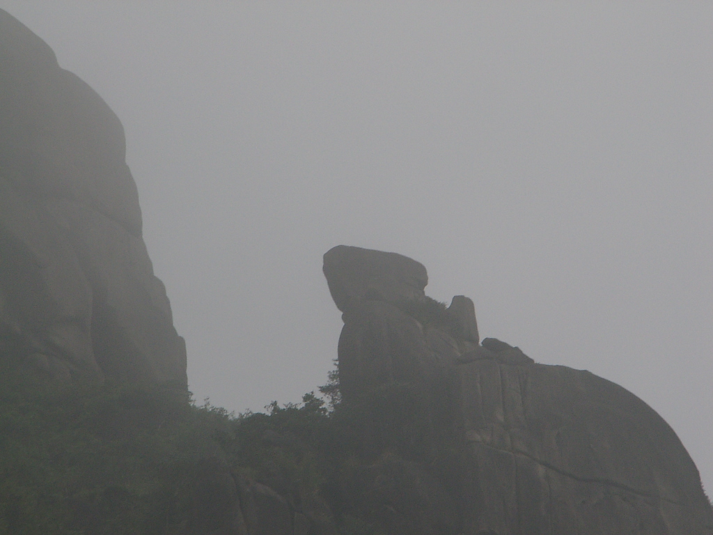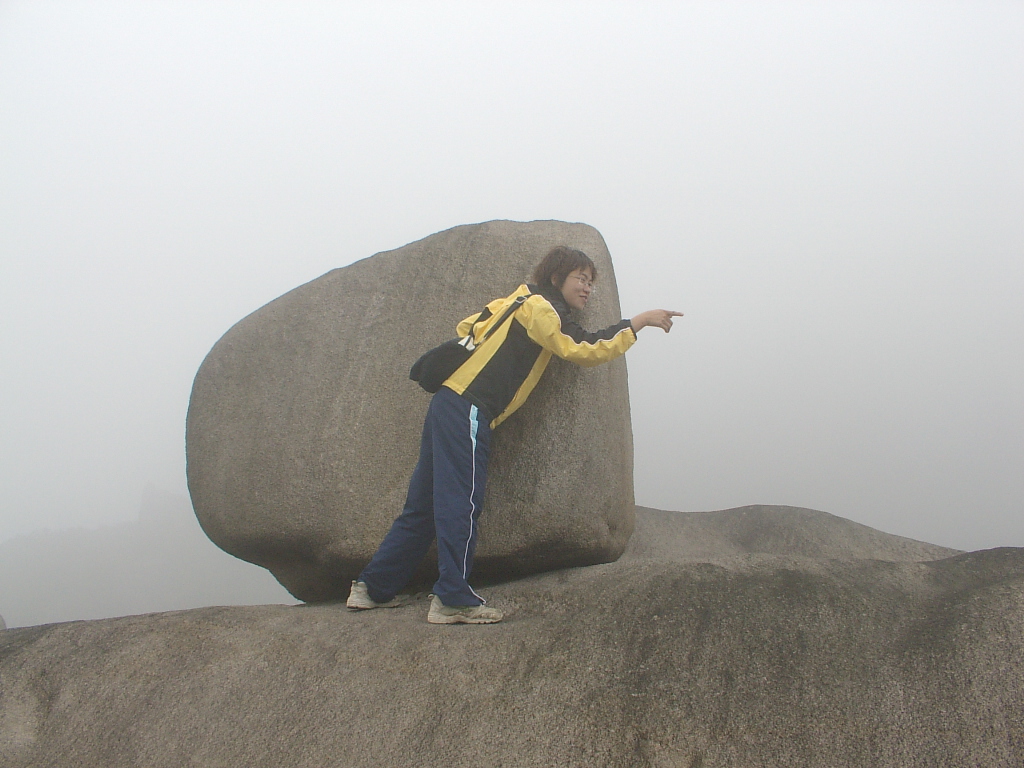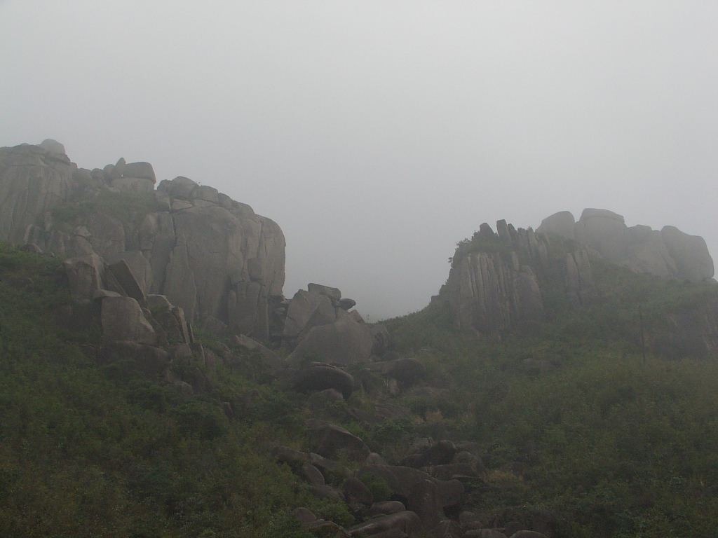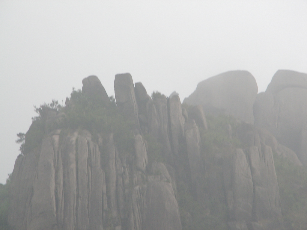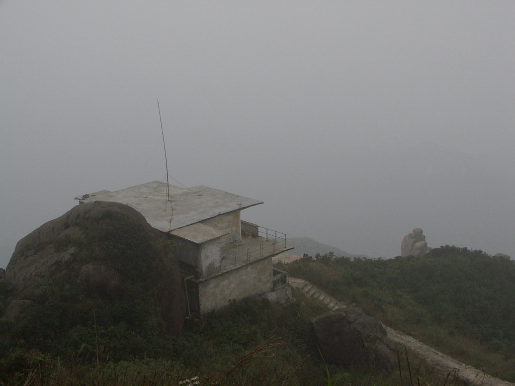7、这里应该是最高峰顶,也是风景最壮丽的地方,千山万堑尽在脚下,气象万千,天清的时候,可以看到南海海面,这里较山下气温要低几度,上到这里凉湛湛的,立刻换了一个季节。也许是大雾的缘故,图片上什么也看不到。