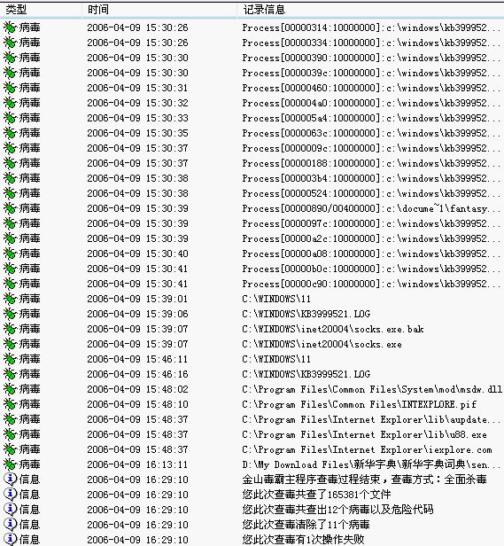 注销之后,我曾经在做到这一步的时候用雅虎IE修复助手进行修复,很不兴所有上述文件全部重新出来了(我哭了55555,雅虎助手强力修复显示共有9个篡改项),我的努力全部附之东流,我又不得不重新再来尝试新的方法,在经过n次尝试,我用了一招最笨的方法,就是重新安装IE,重新启动之后所有病毒文件已经全部不见了,我的江民软件重新回来了(出现了), 而后我进入注册表中查找Torjan programme不见了;进程里WINLOGON.EXE也没有了;我终于消灭了这个该死winlogon.exe病毒。