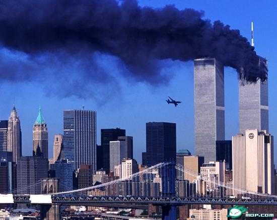 175号航班飞机正在撞向世界贸易中心北塔,美国纽约,2001年9.11日