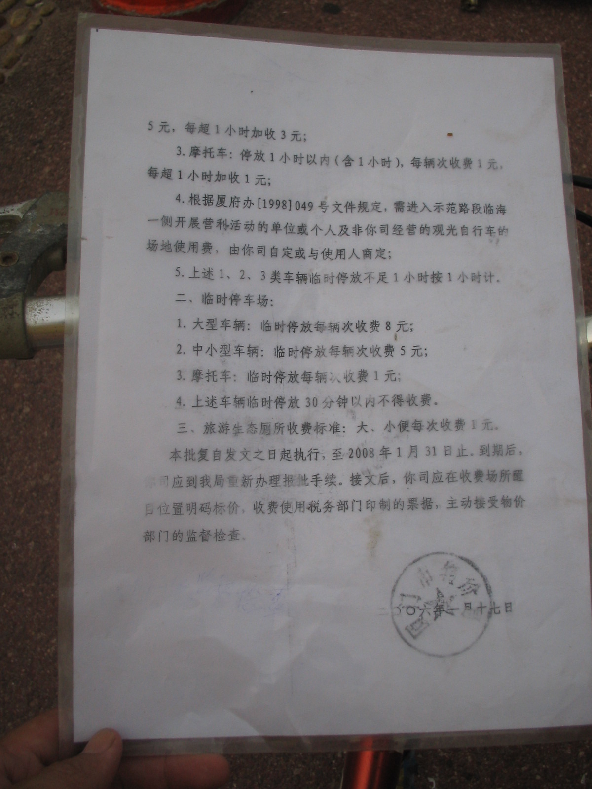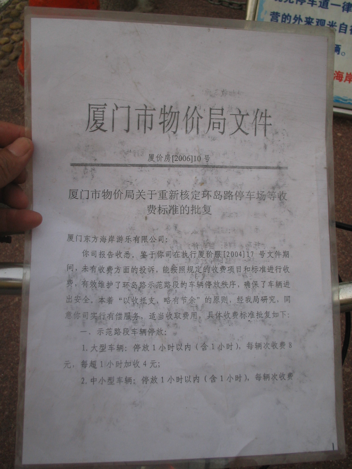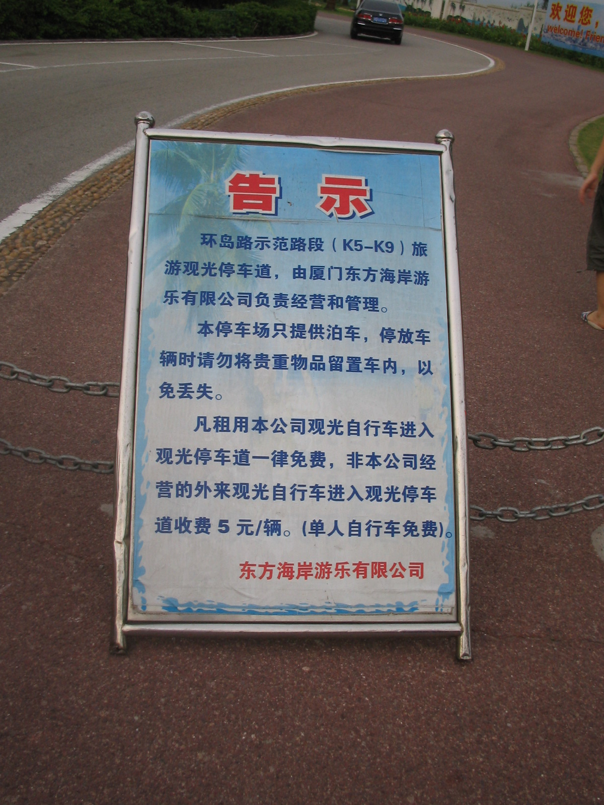 在厦门大学前的环岛路,骑双人单车遭遇有牌的车匪路霸,所有骑骑双人单车经过的均收5元停车费.按规定摩托车才收一元钱.单车不收钱,该地方归他公司管理就为所欲为,十足的车匪路霸,也是厦门的悲哀.此事未完待续投诉.