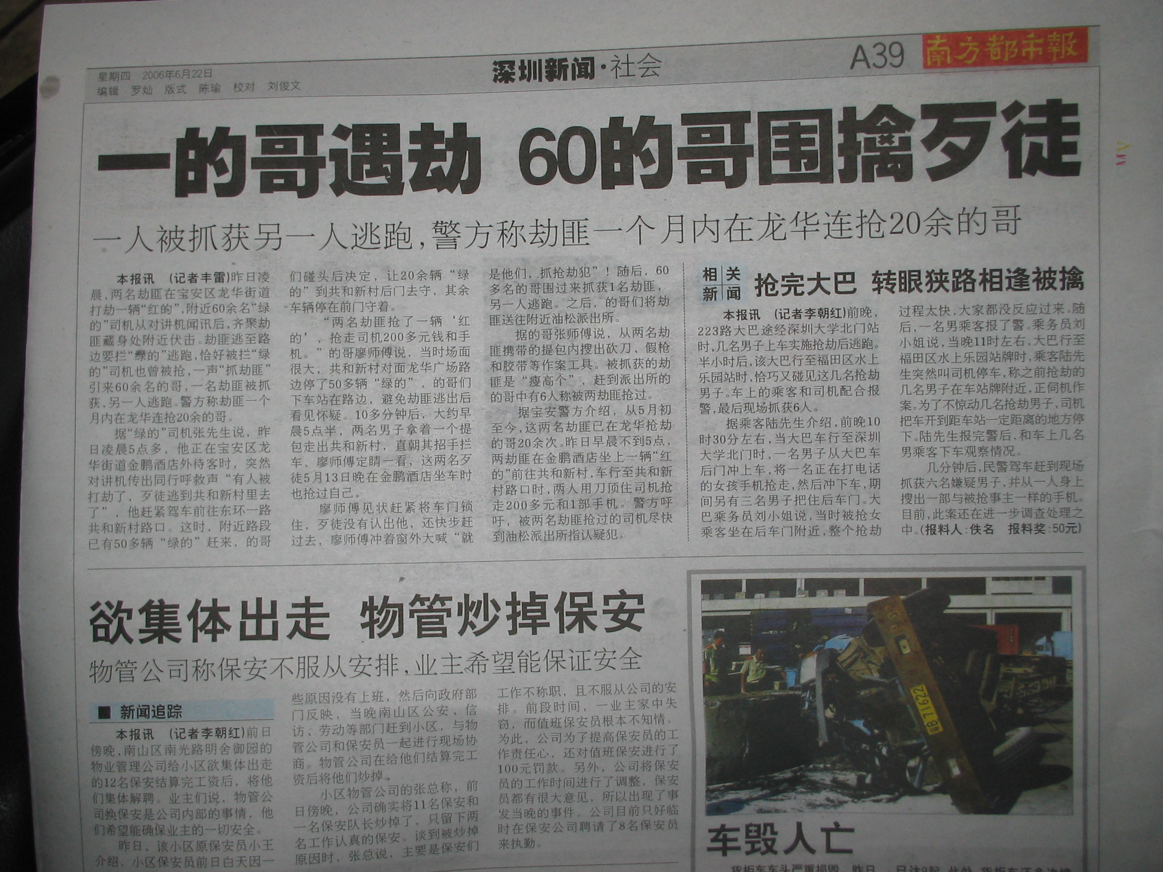 2006年6月24日中午,龙岗区惠深公路见闻。