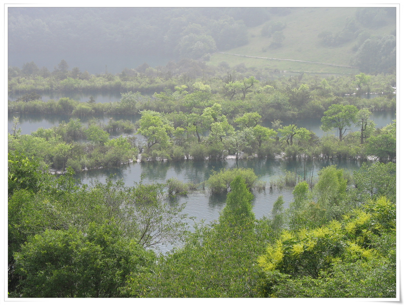 14号早上6点起床,吃完早餐后7点出发到黄龙景区,也经过了重重山路(中途有shopping和吃饭),山路非常崎岖,最高经过海拔4500米的山腰,这些地方都属于高原地带,氧气薄气压低,但我们都坚持不买吸氧工具。中午11点半到达黄龙景区,徒步走路4公里到达黄龙的山顶看五彩瑶池(海拔大概有4000米),山顶与门口的垂直高度大概有1000米,来路一共走了8公里,真是累得要命,4点半下山就坐车前往茂县,这些路除了是山路还是山路,而且非常崎岖和危险,我们坐车都心惊胆跳,车就像在天上走,旁边就是万丈深渊,如果不幸山上有一块石头掉下来大家就over了。。晚上9点半才到达茂县,吃完饭入住鑫茂酒店。