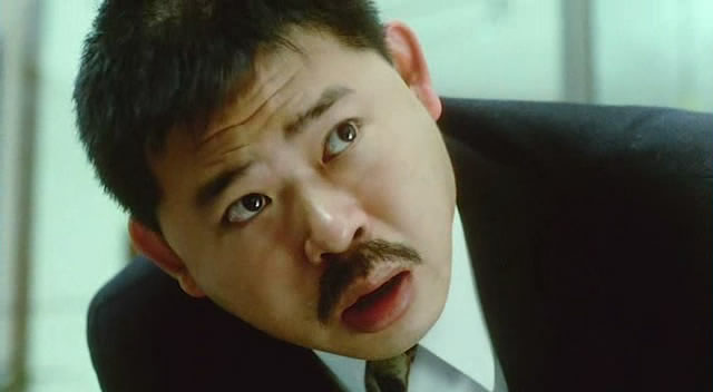 他是著名的动作指导,近期的电影《天下无贼》和《野蛮秘笈》都是他担任动作指导。在《整蛊专家》中饰演程运涛的日 本 客艏村先生,来谈兴建购物中心的事宜,结果被周星驰一顿折磨,来,让我们看镜头回放。