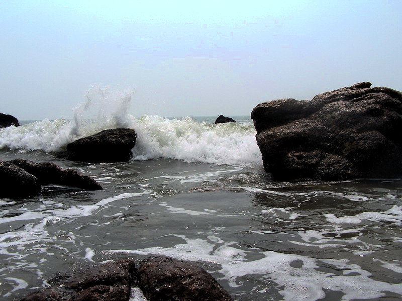 大家若在海边的石头上玩,千万要注意那些贝壳类物质,光着脚很容易被割到的,我就中招了,后来穿鞋了,又滑一次,在拍的时候,没留意,居然被一个浪盖了半身,幸好相机没事!