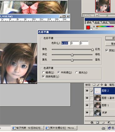 用调色工具调红,我用的是色彩平衡