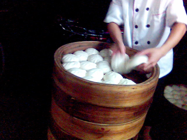 今天早上去学校时,顺便去买早餐,见到一个点心师傅........把一笼面包搬大到另一笼.手手套之类的什么都没戴```汗``