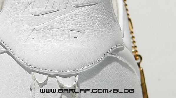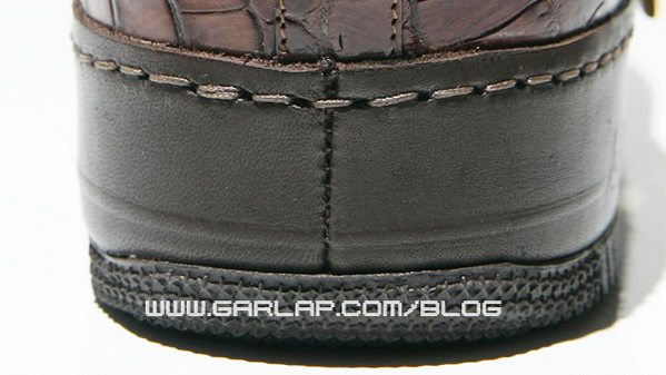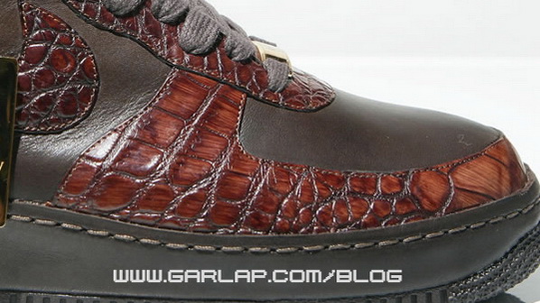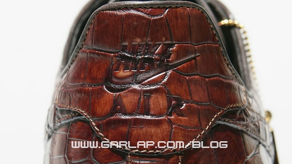 意大利工匠全手工制造,分别以白色的蟒蛇皮和啡色的鳄鱼皮打造鞋身.鞋带头和附送的吊牌.以18K金打造.