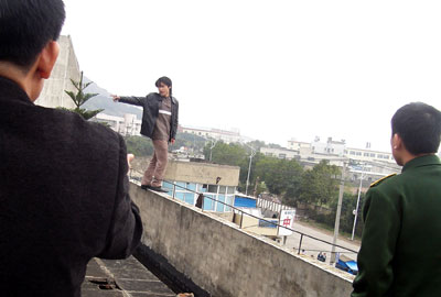 苦力小甲,水泥工,45块一天。年纪虽小,却已炼出一身铜皮铁骨。4月的太阳还远远说不上毒辣,将来的五月至八月的太阳才是苦力们的公敌。但即使如此,如果没晒过太阳的人,这样晒一天,皮也会掉的。据专家说,皮肤癌的罪魁祸首是太阳。我不清楚有多少苦力会死于皮肤癌。 但愿我不会是其中一个。 附图:苦力小甲