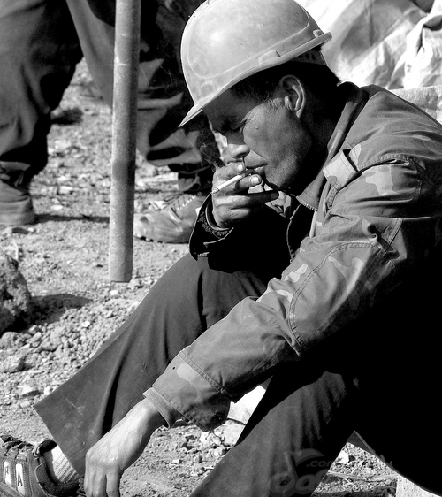 我在工地上当起了地盘工人,我的工作是把工地上长了的桩割下,再用大锤把桩打碎. 每天日出而作,日落而息. 附图:图片引用自网络. 奶奶个熊,这么枯燥辛苦的工作,也给摄影家们拍得这么诗情画意,真是服了. 不过也真实地反映了我们的劳动时间。