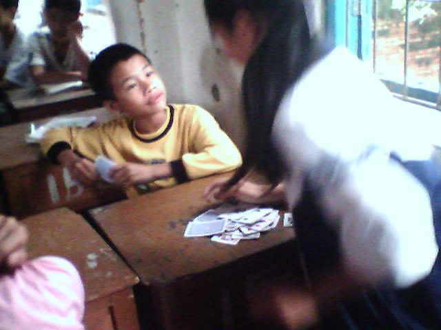 上课时男生和女生打扑克,并争吵起来。