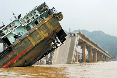 那么大的一条桥这么撞下就断了哦``