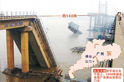佛山九江大桥被撞断将影响广州至湛江的325国道