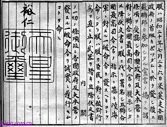 我们兹此颁令所有民事、陆军及海军官员必须服从及遵守由盟军最高统帅所宣布的声明、法令及指令而使投降(条款)能落实于他们或他们的职能中。除非由他(官员)提出告退或呈辞外,我们会如旧保留以上官员的原有职级以及会继续(派遣他们)执行非战略性任务。