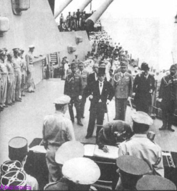 日本外相重光葵代表日本政府签署投降文书