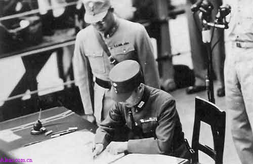 日军陆军总参谋长梅津美治郎代表日军大本营签署投降文书