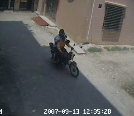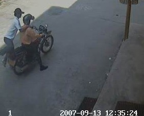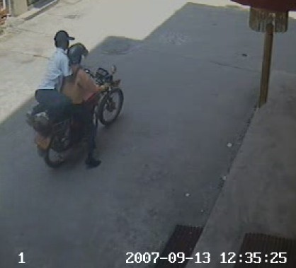 QUOTE(byronroy @ 2007年09月14日 Friday, 11:07 AM) 么托车司机也可能是同党:案发后,此人打了电话(但电话对象暂无法确定),司机来接应. 而且下图中好像也有目击者. (screen.width*0.8-70)) this.width=(screen.width*0.8-70)'> [snapback]1927664[/snapback] 看时间应该是案发前的,图片里面2个是同党的,在动手前用电话近距离沟通.