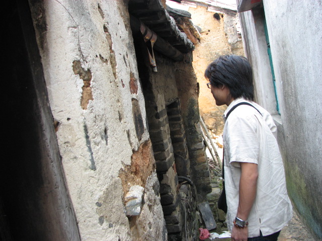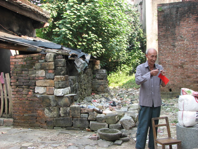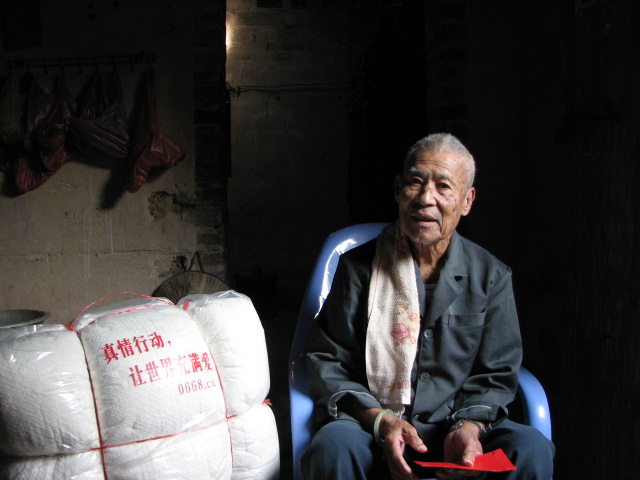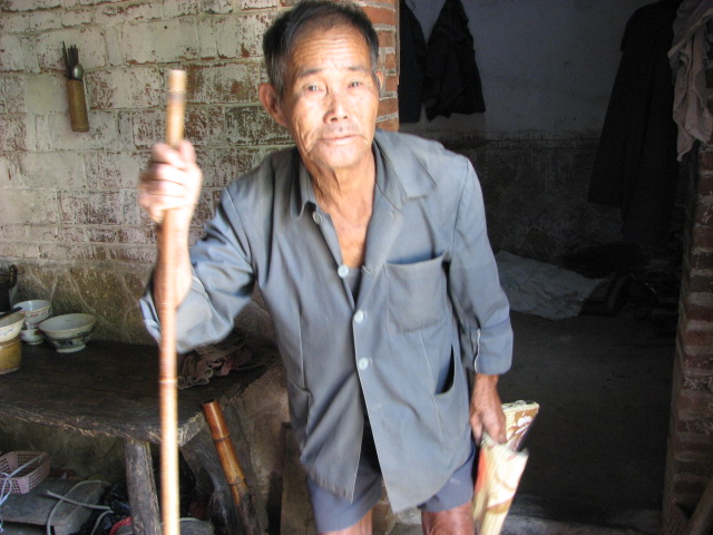 这位老人,严重驼背,站立成n形,只好坐着和我们交谈................