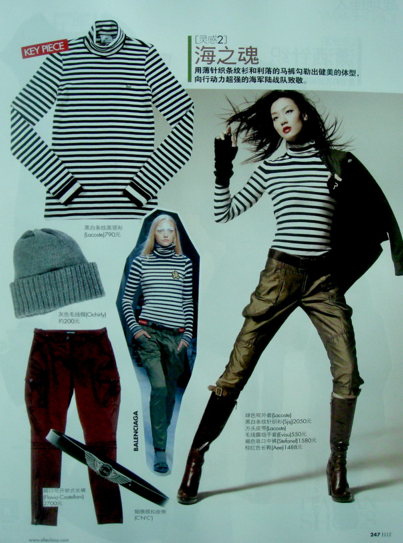 动植物纹样变化来的野性印花,薄水手条纹针织和利落的马裤带来的海军装灵感,粗针织与军装灵感的时装,幽幽光泽的皮革大衣,闪光羽绒短夹克和硬朗的白衬衫……这些共同构成了07秋冬魅惑性感、冷峻潇洒的多变军装灵感!