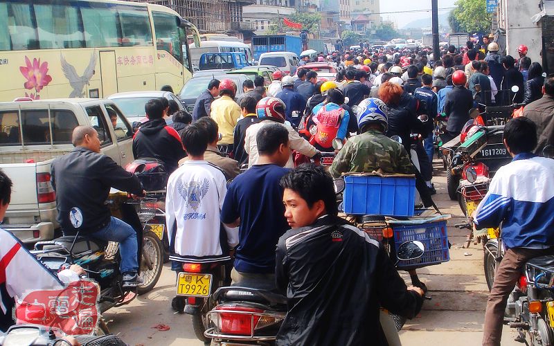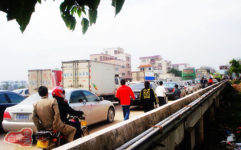 大年初五往茂名,适逢麻岗年例,交通一度混乱。325国道双向全线大塞车达四小时之久,实为罕见!