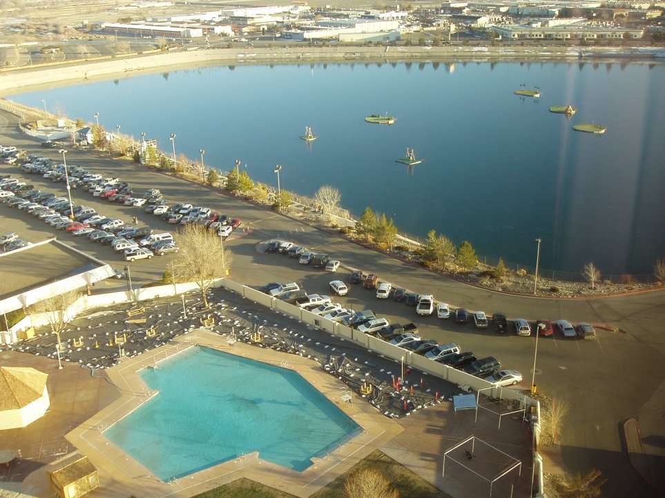 下住的酒店有高尔夫球练习场,目标是在水中的 island. 远次是机场。