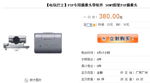 出售PSP专用SONY摄像头, 250$ 出售 买来已经用了2个月,PSP因送给亲切了,留下个摄像头,所以出售.。。 {{全套都还在}} 联系:QQ:75151951 电话:3517777,13727753041{接收短信}