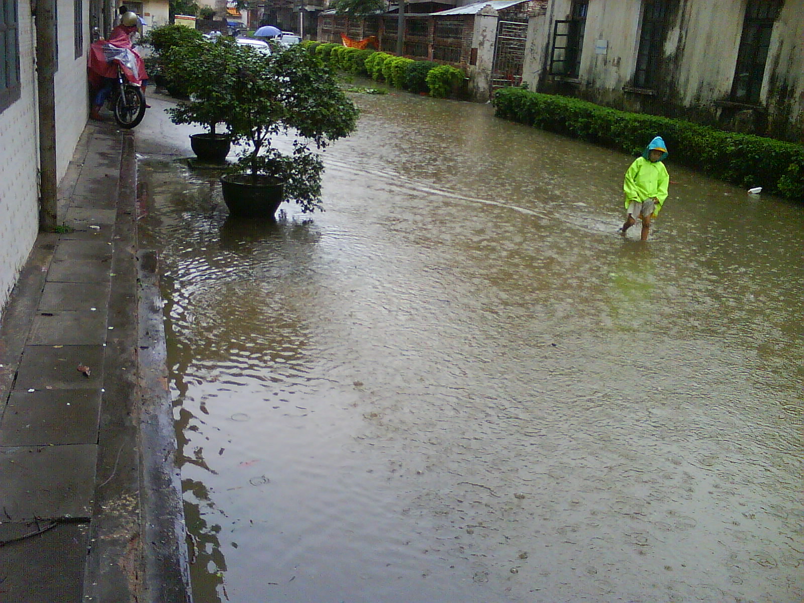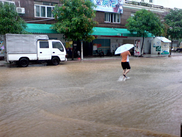 今天的雨大风大,吓死人. 整条街几乎没有一个人.车都不敢过水. 纷纷掉头 没带相机,手机拍的. (图一:雨中) [attachmentid=177698] (图二:雨后) [attachmentid=177697]