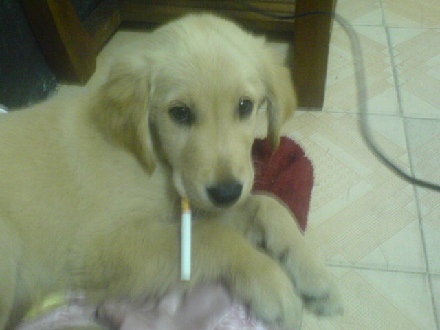 呵呵``有所不知了```小金毛是这样的````这狗狗体格不错的哦````