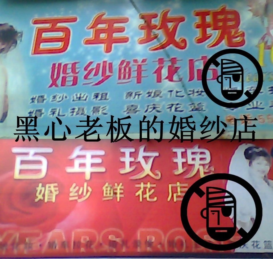 工人文化馆楼下.百年玫瑰婚纱店.用的婚纱是人家用旧了的婚纱.二手买回来后.用漂白水飘白后再缝补一下就上架了.租出去再拿回来的婚纱如果不是太脏.没经过清洗又上架了.别人穿过的衣服没经过清洗消毒.也能租给别人穿.也太黑心了吧.穿了那婚纱没传染到病毒还好.要是传染到什么病毒那就不好了.