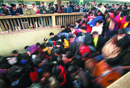 春运期间,火车站里的汹涌人潮。