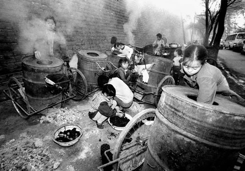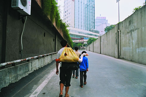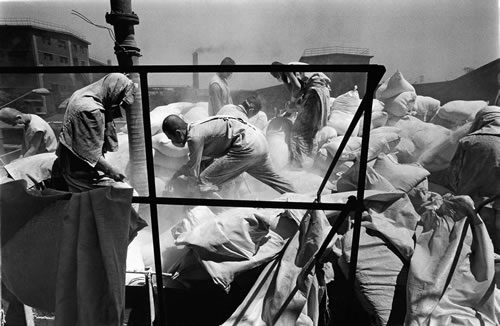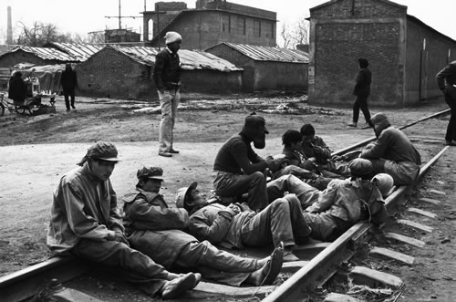 在货场里等待工作的民工
