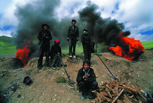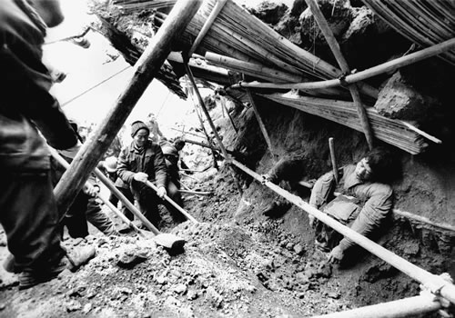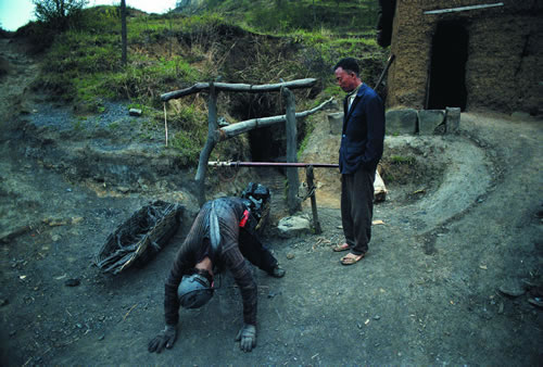 刚出矿井的煤矿工人