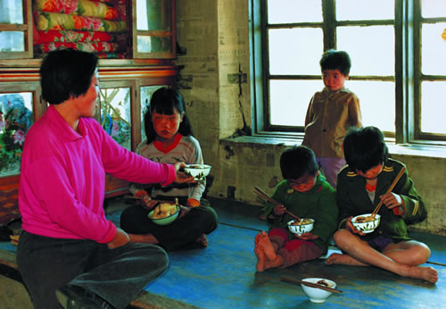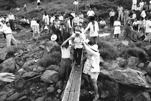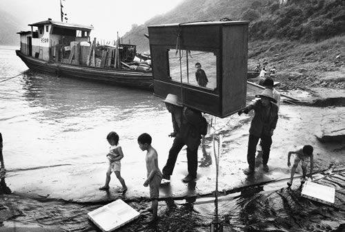 首批三峡移民将家具从山上搬下来