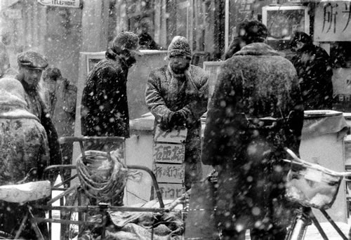 无业人员冒着大雪在零工市场等待雇主