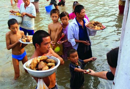 87岁的老移民被搀扶上船,离开三峡库区。