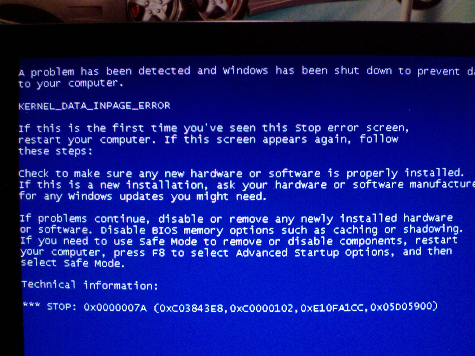 烟花瞬间 一介草民 版主 注册 2006-03-04 消息 5,302 反馈评分 571 点数 191 2009-06-09 #3 0x0000007A 解决方案:首先用升级为最新病毒库杀毒软件查杀病毒, 如果促无信息中还有0xC000009C或0xC000016A代码, 那么表示是坏簇造成的, 并且系统的磁盘检测工具无法自动修复, 这时要进入\\"故障恢复控制台\\", 用\\"chkdsk /r\\"命令进行手动修复. 我想你是内存有问题,建议试试以上方法 如果还有,尝试刷新下BIOS和重新擦洗下内存跟主版的接口