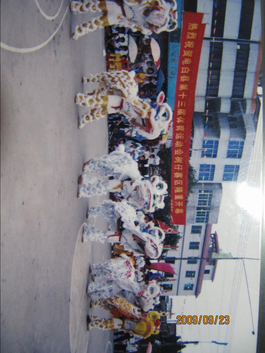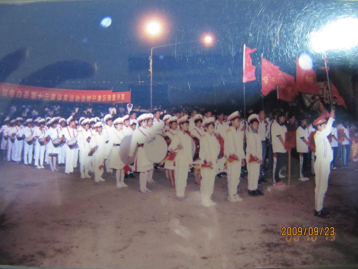 2000年10月,树仔篮球协会承办了电白县第十三届体育运动会篮球比赛沿海赛区的赛事,这是当时开幕式的场面,树仔中心小学少年先锋队和登楼武术协会舞狮团作精彩表演!